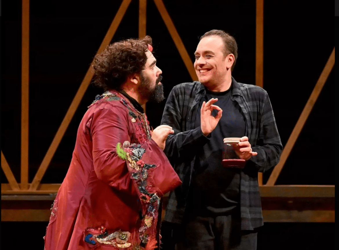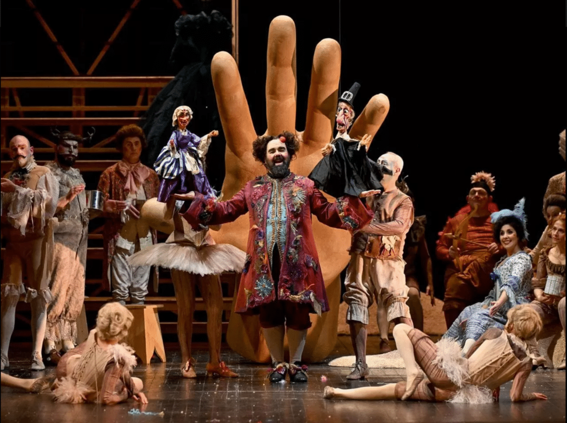 Un Elisir d’amore très original vient d’être proposé au Teatro Regio de Parme. Le metteur en scène Daniele Menghini – ancien collaborateur de Davide Livermore et Graham Vick – a mis en scène le melodramma giocoso de Donizetti sous la forme d’une fantasmagorie, avec des marionnettes, des mimes et les burattini[1] de Daniela et Giordano Ferrari. Le protagoniste Nemorino est apparu non seulement comme le paysan naïf, amoureux de la réticente Adina, mais d’abord comme un Geppetto romanesque désireux de sculpter dans le bois les personnages de l’opéra, puis comme un Pinocchio adolescent impliqué dans le dur monde des adultes, et enfin comme un homme heureux de réaliser son rêve d’amour.