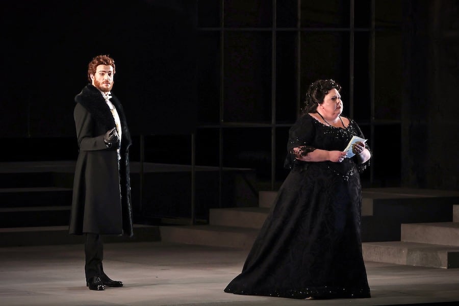 Beatrice di Tenda est donc son avant-dernier opéra et celui qui se distingue le plus de ses prédécesseurs par son absence de grands airs et de cabalettes, un élément qui, malgré la présence de la diva Giuditta Pasta, a décidé de son issue incertaine lors de la première vénitienne en mars 1833 et de son absence de popularité par la suite. À l’époque moderne, c’est à Joan Sutherland que l’on doit la renaissance de ce titre dans les années 1860. Son interprétation était presque « métaphysique », quasi abstraite dans son raffinement vocal ; à cette interprétation s’opposa peu après l’interprétation plus naturaliste et dramatique de Leyla Gencer. Aujourd’hui, à Gênes, la soprano américaine Angela Meade fait preuve de la prodigieuse projection vocale, d’une agilité pleine de précision, de sons filés précieux et d’une justesse dans le phrasé que nous avons admirés en d’autres occasions dans le rôle de cette figure angélique, pure et martyre transfigurée dans la paix céleste qui l’attend. La voix, cependant, a gagné une couleur et un vibrato que nous ne lui connaissions pas auparavant et la présence scénique reste limitée, de sorte que le personnage, qui n’est déjà pas très fort émotionnellement, devient encore moins empathique qu’à l’accoutumée.