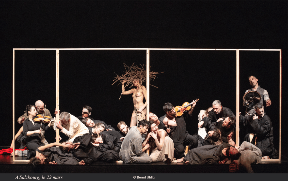 Dès la pulsation initiale du chœur introductif, celle de notre cœur, du battement du sang dans les tempes de notre angoisse, la musique invite à une danse quasi immobile. Et pendant le chœur initial, la troupe s’avance vers nous, lentement, dans sa nudité d’avant la faute, jusqu’au-devant de la scène – moment prenant qui nous place toutes et tous face à notre condition humaine originelle et collective.