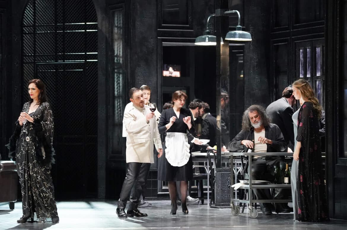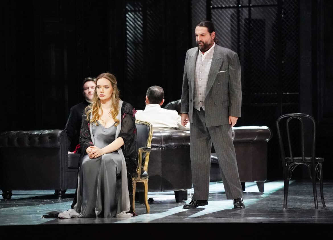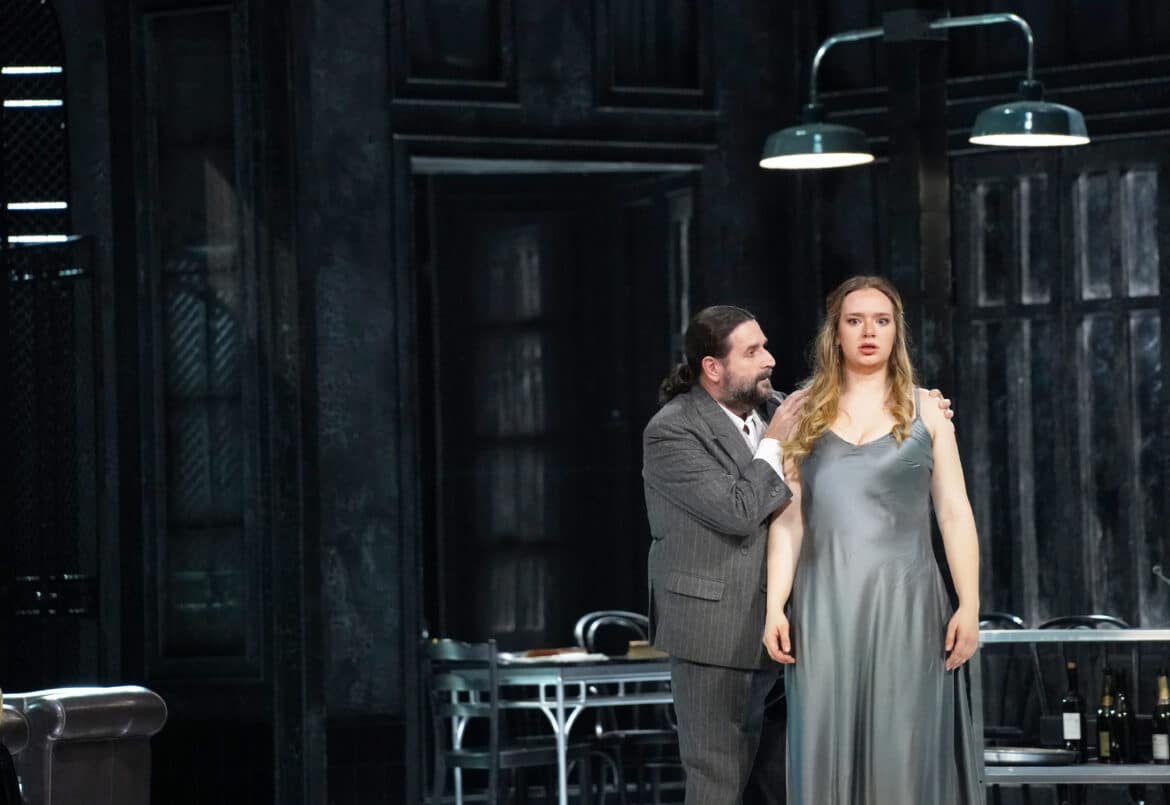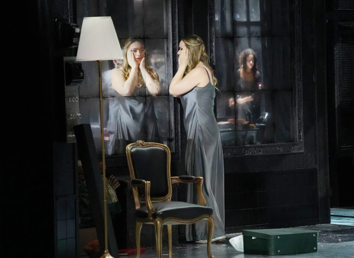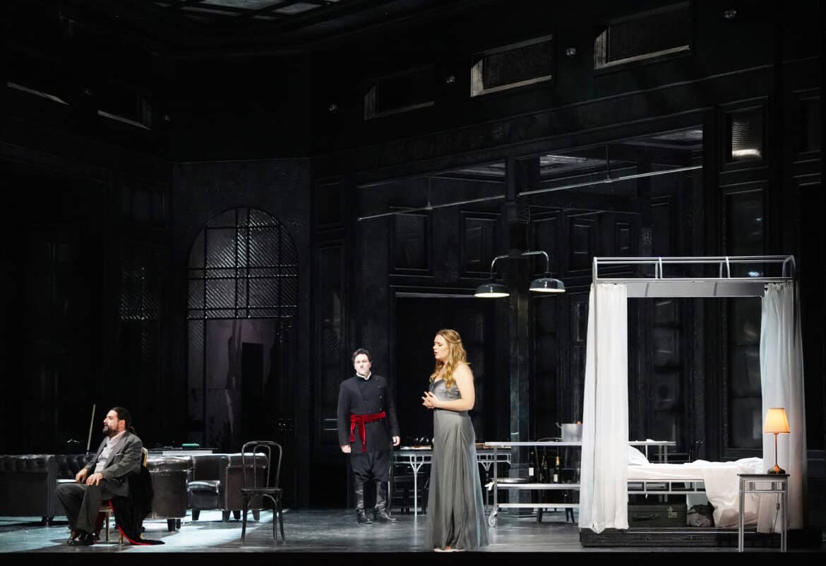 On passera rapidement sur le choix déroutant d’encombrer la scène de la totalité des protagonistes pendant la quasi-totalité du spectacle… À part dispenser le metteur en scène de régler les entrées et sorties des personnages, cette option engorge les espaces d’un plateau exigu, brouille la lisibilité de l’intrigue et – surtout – met les chanteurs dans la situation inconfortable de devoir inventer du jeu en permanence. Livrés à eux-mêmes, les artistes en sont souvent réduits à occuper l’espace, les bras ballants, et à se regarder chanter les uns les autres dans un non-spectacle malaisant.