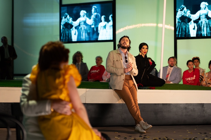 Face à une mise en scène ratée qui heurte la musique et tourne en dérision l’opéra lui-même, l’équipe musicale triomphe – et tout particulièrement l’excellent chef Francesco Lanzillotta.