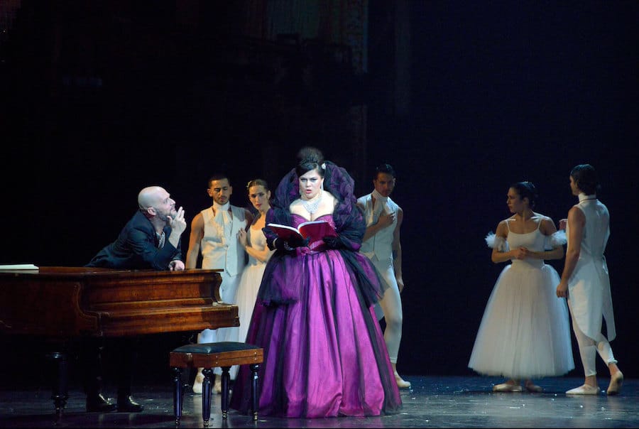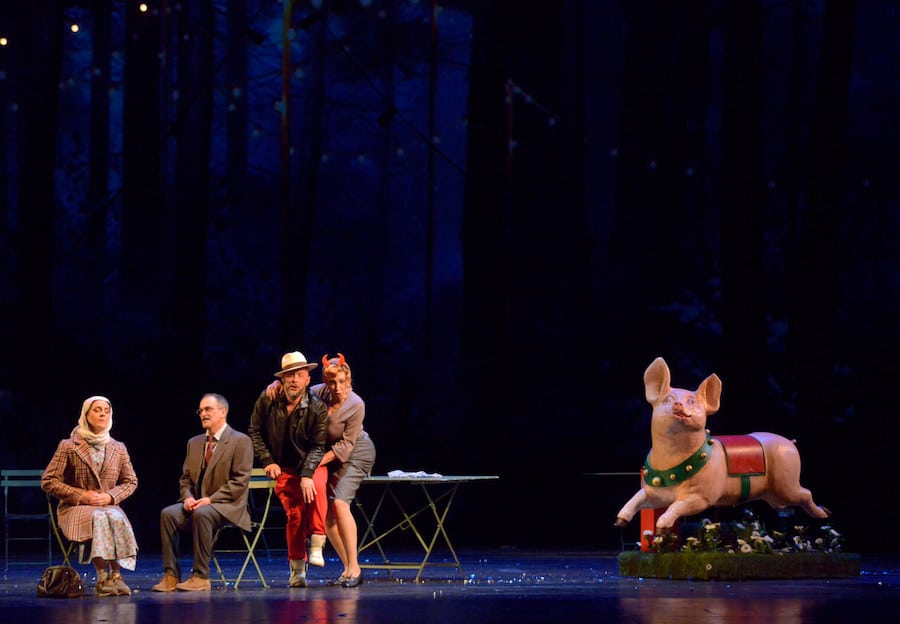 Tout commence dans le jardin de Martha, l’extérieur sinistre d’une Bier Stube avec un cochon prêt à être chevauché. Le sabbat infernal, quant à lui, est une rave avec des personnages sombres ne se souciant guère de l’incendie qui se déclare dans la forêt puis dans le théâtre. Il va sans dire que voir des flammes dans la salle de la Fenice, même s’il ne s’agit que d’images projetées, est pour le moins impressionnant.
