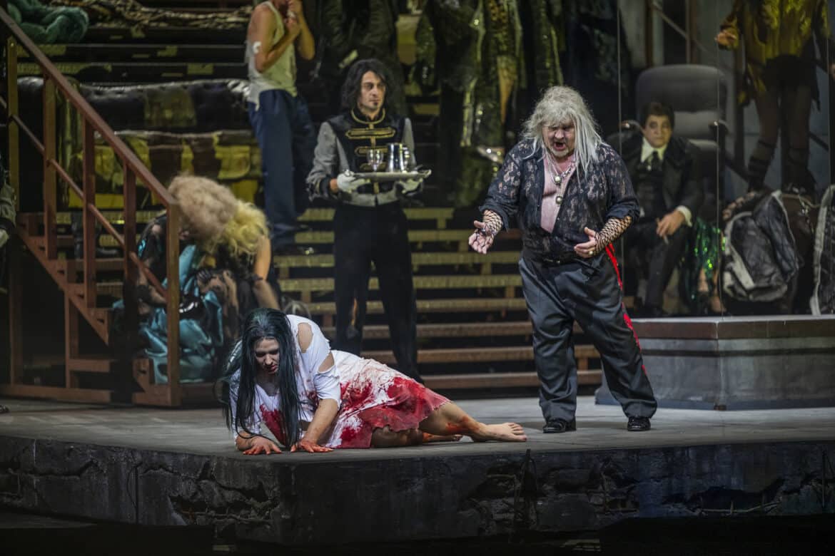 Le ténor allemand Gerhard Siegel est un habitué des scènes parisiennes, où il fut, entre autres, Mime en 2020, ou encore Aegisth en 2022. Le voilà donc à nouveau, roi, époux concupiscent et libidineux de la reine Herodias. Il fait preuve d’une grande expressivité sonore malgré le jeu incohérent qui lui est imposé, ce qui lui permet par son lyrisme et sa force vocale d’emplir aisément toute la salle de sa voix puissante.