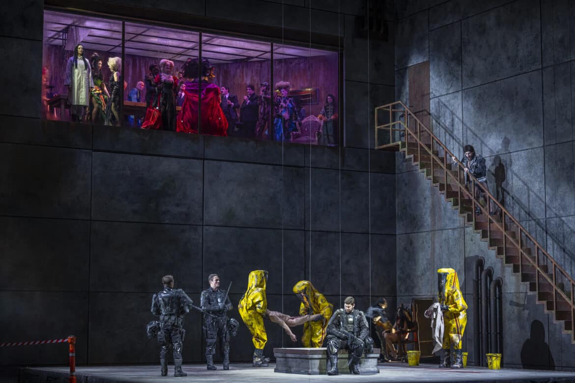 Le ténor slovaque Pavel Breslik, ténor slovaque (excellent Tamino sur cette même scène en 2017), est un fort honorable Narraboth , même s’il montre de légers signes de fatigue en cours de soirée avec une légère baisse de puissance. Il faut reconnaître que le costume complet de CRS avec harnachement, casque , masque à gaz et mitraillette n’aide pas !