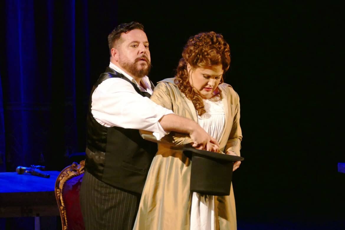 Beaucoup de goût ici et quelques images marquantes, une fois le rideau retombé, comme par exemple celle qui nous montre, au début de l’acte III, dans l’un des paroxysmes dramatiques de la partition, Renato – comte Anckarström – et son épouse Amelia de chaque côté d’une scène de théâtre dont le fronton baroque s’est fissuré, comme leur couple en cet instant.