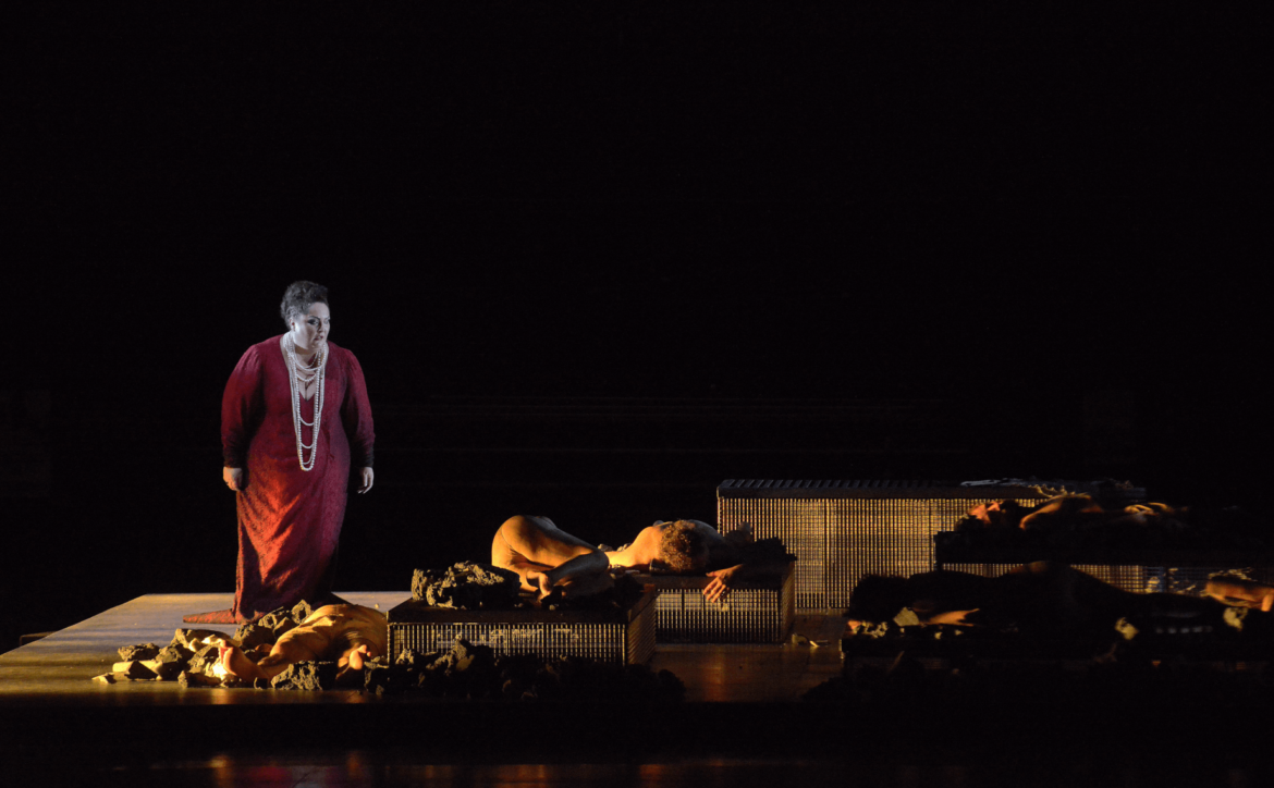 Contrairement à la demande de son auteur, qui souhaitait que soit représenté sur scène de manière absolument réaliste l’environnement dans lequel se déroule l’histoire (la forêt, la rue), le metteur en scène reprend la scène de La fabbrica illuminata de la première partie, de manière encore plus dépouillée et sans les images vidéo. Les corps que nous avons vus précédemment sont éparpillés sur la scène, démultipliant le cadavre de l’être aimé. Dans les deux cas, c’est la solitude et l’aliénation qui sont mises en scène, reliant ainsi deux œuvres si éloignées dans le temps et dans leurs intentions.