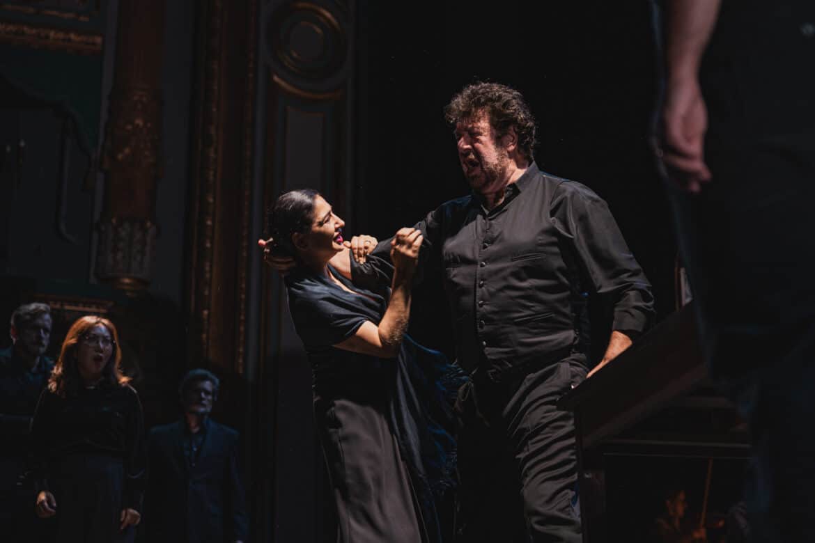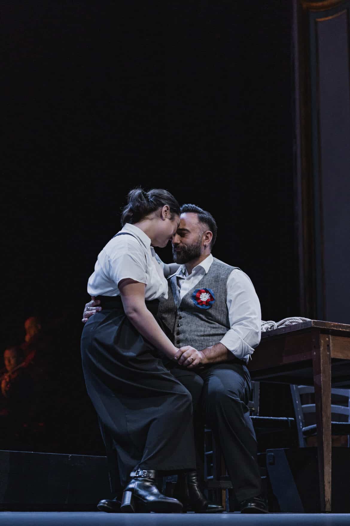 Trois autres rôles comptent dans cet opéra : la mère du petit Marat, chantée par la mezzo Sylvia Kevorkian; le Soldat de Matteo Lorenzo Pietrapiana, à la présence vocale et scénique bienvenue ; enfin le Charpentier de l’autre baryton, Stravos Mantis, plus sombre et très en voix. C’est sans doute lui qui fit le plus d’effet en ce soir de de première.