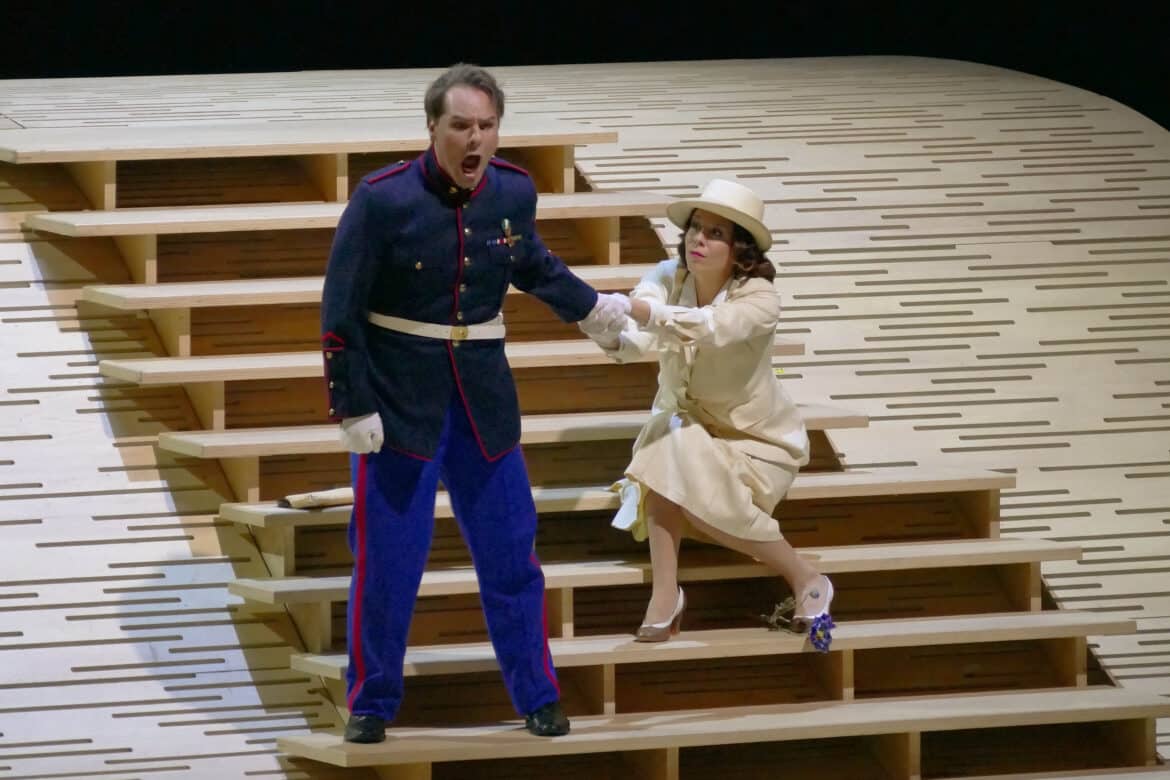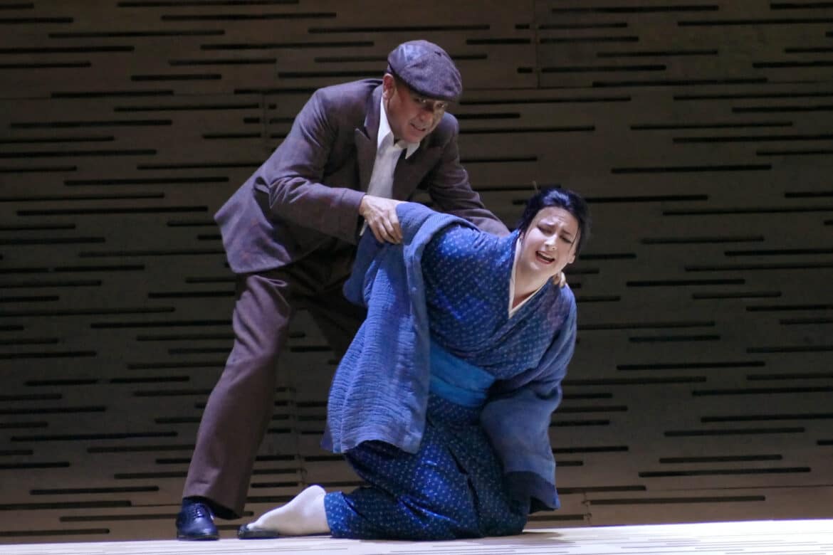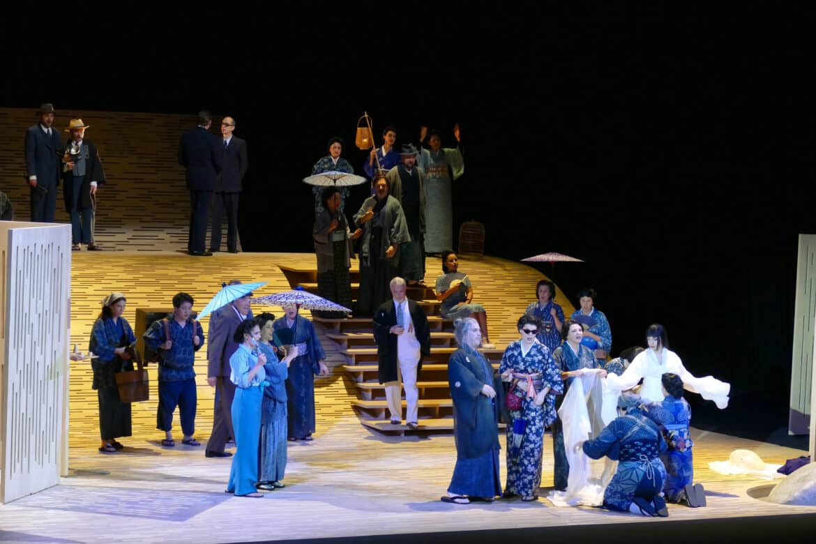 Et pourtant, les choses avaient moyennement commencé. Pour le dire clairement, les voix, somme toutes peu puissantes, peu colorées, mais « honnêtes », et une mise en scène banale, n’ont pas suscité d’enthousiasme démesuré avant l’entracte. Ce fut tout le contraire par la suite : la succession de réussites scéniques, le jeu de l’héroïne incarnée par Alexandra Marcellier, sur-expressive, remplie de pathos, de gestes, bien plus italienne que japonaise, les options prises (comme la mort de Butterfly prenant dans ses bras Pinkerton, criant avec remords le nom de Butterfly, l’éclairage cessant brusquement), tout cela a conduit à emporter le spectateur dans le sens du drame, avec une efficacité bouleversante. Le mérite en revient à la metteuse en scène Emmanuelle Bastet et au scénographe Tim Northam.
