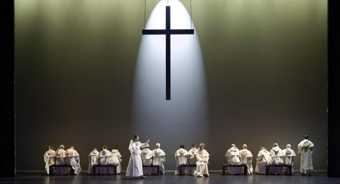 Inspirée d’un roman d’Anatole France paru en 1891 et créée le 16 mars 1894 à l’Opéra de Paris, la Thaïs de Massenet, malgré la superposition sulfureuse de deux thématiques (sexe et religion) propre à enflammer les esprits et la présence de « tubes » (la Méditation, « Dis-moi que je suis belle » et « Voilà donc la terrible cité ») n’a jamais acquis la notoriété des grands chefs-d’œuvre de Massenet : la discographie de l’œuvre reste assez maigre et les reprises scéniques font toujours figure d’événement. Thaïs est parfois donnée en version de concert (on se souvient de la brillante soirée proposée par Renée Fleming et Christoph Eschenbach au Châtelet en 2007 ; récemment, l’Opéra de Toulon et le TCE l’ont également proposée en concert), mais la seule production scénique française récente est celle de Tours, en 2022, avec Plasson à la baguette et Grinda à la mise en scène[1]. Rien à l’Opéra de Paris depuis presque quarante ans (1988) : la production était alors signée Nicolas Joël .