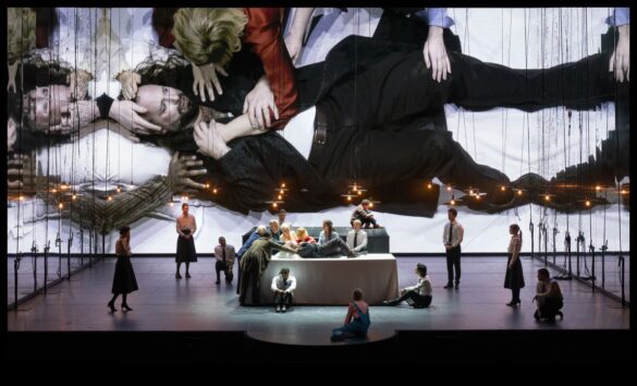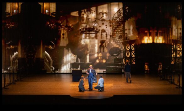 Il se passe, au début de l’Acte I de Fanny and Alexander, opéra du compositeur suédois Mikael Karlsson qui connaissait ce 1er décembre sa création mondiale à La Monnaie, un phénomène étrange. Nous sommes dans la chambre du jeune Alexandre et de sa sœur Fanny, après une longue soirée de festivités de Noël chez les Ekhdal, famille bourgeoise d’une petite ville de Suède qui règne depuis plusieurs générations sur les destinées du théâtre local – dirigé par Oskar dont la mère Helena, vénérable veuve, fut une comédienne réputée. Après l’effervescence des retrouvailles familiales, les agapes, les fous rires et une mémorable démonstration de pétomanie par un oncle farceur, les deux enfants de retour dans leur cocon installent la lanterne magique dont les vignettes bercent leurs nuits. Fanny insère les plaques, Alexandre allume l’appareil… et, malgré l’immensité de l’écran vidéo en fond de plateau, malgré les mille et une possibilités d’afficher quelque part sur scène les images projetées – comme le spécifie le livret de Royce Vavrek et comme le montre Bergman dans son film -… rien ne se passe. Alexandre décrit à sa sœur les scènes censées défiler sous leurs yeux, mais rien n’est montré au public. Bergman avait intitulé Laterna Magica le premier tome de sa magnifique autobiographie, le Magica semble ici curieusement oublié[1].