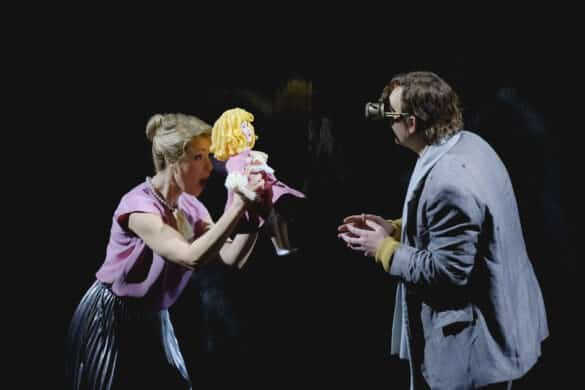 Chant du cygne d’Offenbach, Les Contes d’Hoffmann (1881, Opéra-Comique) auront une postérité féconde, en dépit du champ de bataille éditorial de ses versions (13), achevées par Ernest Guiraud et le fils d’Offenbach dans un premier temps, puis reconstituées par les musicologues. La dramaturgie de Lotte de Beer (directrice artistique de la Volksoper de Vienne) propose une relecture du livret de Jules Barbier qui revisite quatre contes d’E.T.A. Hoffmann. Il s’agit de plonger dans la psyché du héros poète, non seulement par le déroulement musical (depuis l’édition actuelle de J.-C. Keck), mais également par la récriture d’un dialogue extériorisé entre Hoffmann et sa conscience artistique, la Muse. L’atout réside dans le questionnement du héros, objet et sujet, par son alter ego devenue une thérapeute contemporaine. En sus, celle-ci établit une connivence entre le public et son action, clé de compréhension utile aux nouveaux publics face à la complexité narrative. Une vision éloignée de celle présentée à travers le prisme du 7e art (par K. Warlikowski) à la Monnaie en 2020.