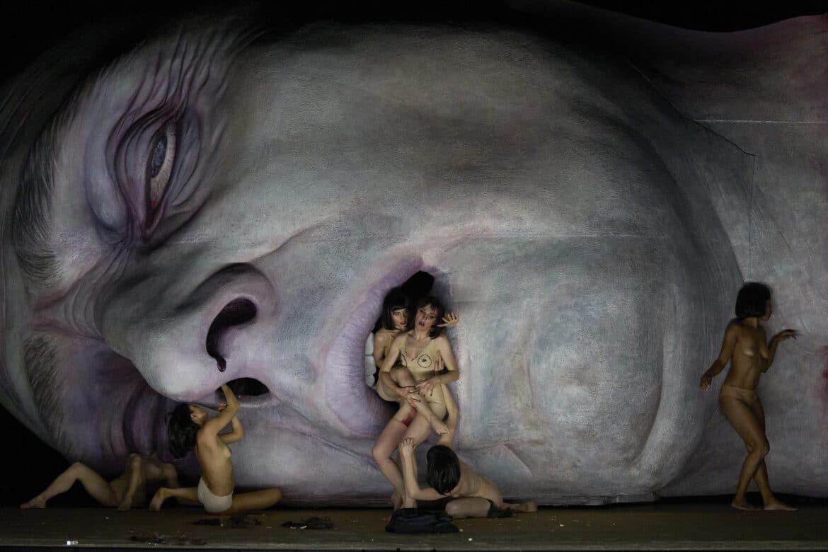 Une direction d’acteurs travaillée, mais aussi le fait d’avoir fait de Jochanaan un marginal aux propos particulièrement dérangeants dans cet univers capitaliste aux règles intangibles rendent le propos convaincant. Le spectacle offre par ailleurs quelques tableaux particulièrement forts : le suicide de Narraboth, la danse des sept voiles, fort bien interprétée par Olesya Golovneva, la scène finale, avec l’immense tête de Jochanaan reposant sur le sol et de laquelle sortent (par les narines, les yeux, la bouche) divers avatars de Salomé ; ou encore le viol de Salomé par Hérode, et la scène où la princesse scalpe, littéralement, Jochanaan. Pour respecter la règle de la bienséance qui est celle du public du XXIe siècle, la scène du viol reste bien sûr invisible du public (seule une tache de sang sur le collant portée par la chanteuse en témoigne) ; mais la torture infligée à l’homme est exhibée longuement, minutieusement, à l’avant-scène.