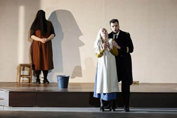 Tiphaine Raffier réussit pourtant à dépasser le contexte révolutionnaire omniprésent et cette surcharge scénique pour toucher aux dilemmes universels de l’humanité. Chaque personnage est bien dessiné et montre une évolution intérieure palpable, traduisant sa lutte avec la peur et la quête de courage. La recherche de sincérité dans le jeu ajoute à la puissance de sa direction d’acteurs qui fait résonner les enjeux humains et spirituels avec force. Mourir aura rarement paru aussi simple… et aussi difficile. Les scènes de groupe des Carmélites dégagent une puissance éloquente de cohésion mais aussi d’expression des individualités au sein de la communauté. L’utilisation subtile de la lumière, des ombres et du silence renforce la dimension transcendantale de l’œuvre. Tout est précis et sensible, nonobstant quelques attitudes scéniques qui gagneront en naturel aux cours des représentations.