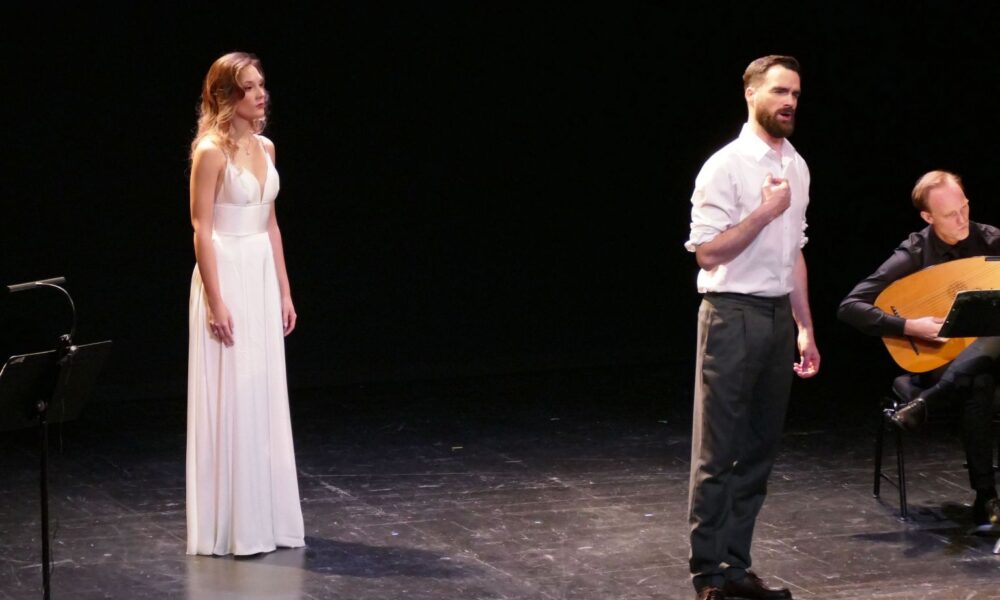 Les voix les plus remarquables sont celles de Proserpine (Julie Vercauteren), et surtout de Pluton (Alexandre Baldo) : quelle basse profonde, puissante, ferme, ample, colorée ! Personnage certes imposant mais secondaire, pour une fois mis en lumière ! On eût aimé Baldo en Charon, mais pour une fois, Pluton dépasse son passeur (en effet, la scène du passage du Styx est un moment extraordinaire de toute l’histoire de l’opéra). Cela dit, le Charon de Jean-Manuel Candenot est agréable, la voix est posée et le jeu fluide ; la musicalité est indéniable, mais la théâtralité est trop modérée, pas assez « baroque ». De même, l’arrivée de la Messagère est décevante ; ce doit être préparé, dramatique, un choc terrible ; elle survient presque en douceur, même la mise en espace banalise son apparition. Toutefois, les silences, les murmures, les tremblements annonçant la mort d’Eurydice sont très bien amenés par la mezzo-soprano Maria Chiara Gallo, qui remplace au pied levé María Cristina Kiehr, sans partition en mains – du grand professionnalisme. L’Eurydice de Louise Thomas est d’une belle pureté, des lignes simples et chaleureuses ; un rôle en retrait, dans tous les sens du terme. Tout le contraire de l’omniprésent Orfeo incarné par Romain Bockler, à la voix et à la technique honnêtes, assurant sa partie avec vigueur, sans faille, notamment dans ses difficiles ornements lors de ses stances de séduction à l’entrée des Enfers. Parmi les autres voix, tout est de bonne tenue, que ce soit la Musique (Lise Viricel), qui lance brillamment le drame, la nymphe (Gabrielle Varbetian) et les bergers (Davy Cornillot, Samuel Namotte, Estelle Defalque) qui constituent une sorte de chœur à l’antique, commentant et animant l’action ; mention spéciale à la voix claire et admirable d’Olivier Coiffe ; jusqu’à l’Espérance, portant Orfeo au seuil de l’Abîme, rôle endossé par le contre-ténor Logan Lopez Gonzales. Il est vrai que L’Orfeo a été en 1607 le moment de gloire d’un castrat incarnant ce type d’Allégories.