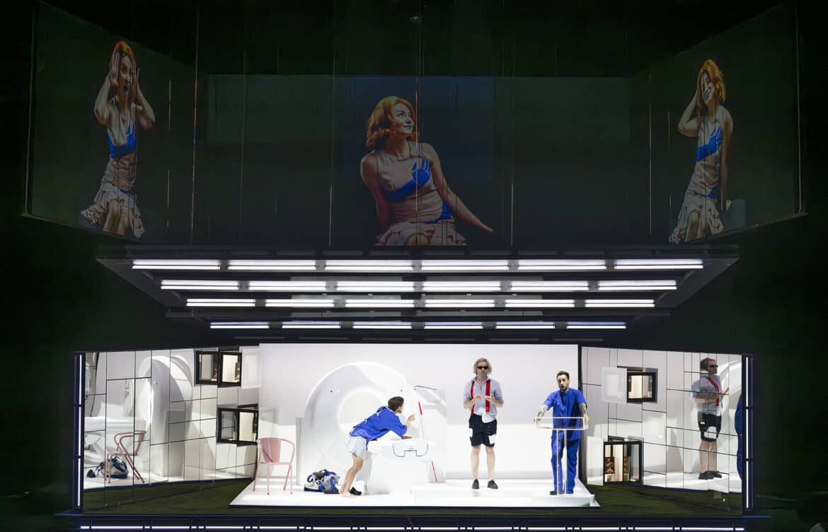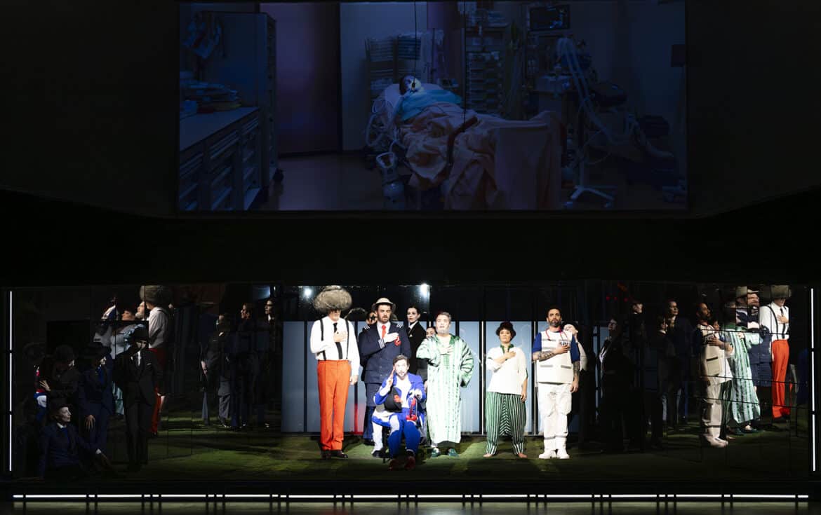 C’est cependant avec leur traitement du dernier acte, celui d’un bureau des rêves entièrement transposé dans la salle d’IRM d’un hôpital où se succèdent des « patients » (devenus des clients puisque dans ce monde tout s’achète !) tour à tour émouvants ou inquiétants, que les metteurs en scène font assaut d’une originalité qu’il convient de saluer.