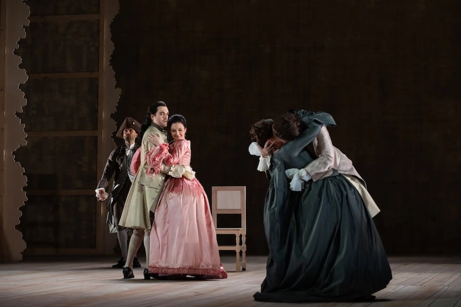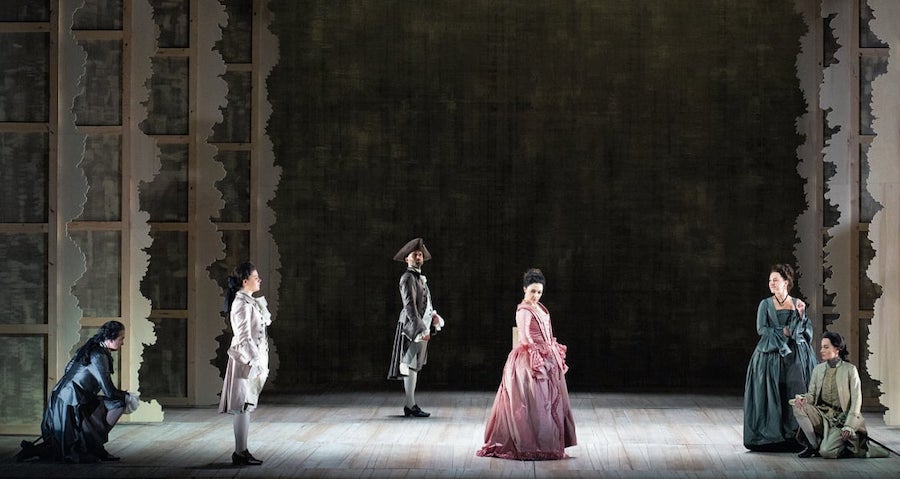 Née il y a 25 ans sur les planches du Slottsteater baroque de Drottningholm en Suède, la mise en scène de Pierre Audi avait d’abord été présentée à Amsterdam puis à Bruxelles. Pour la transporter à Rome, il a fallu reconstruire les décors et les costumes qui avaient été détruits, mais grâce aux ouvriers et aux ateliers de l’Opéra de Rome, il n’y a pas eu de problèmes, et même, selon le metteur en scène lui-même, ces nouveaux décors seraient encore meilleurs !