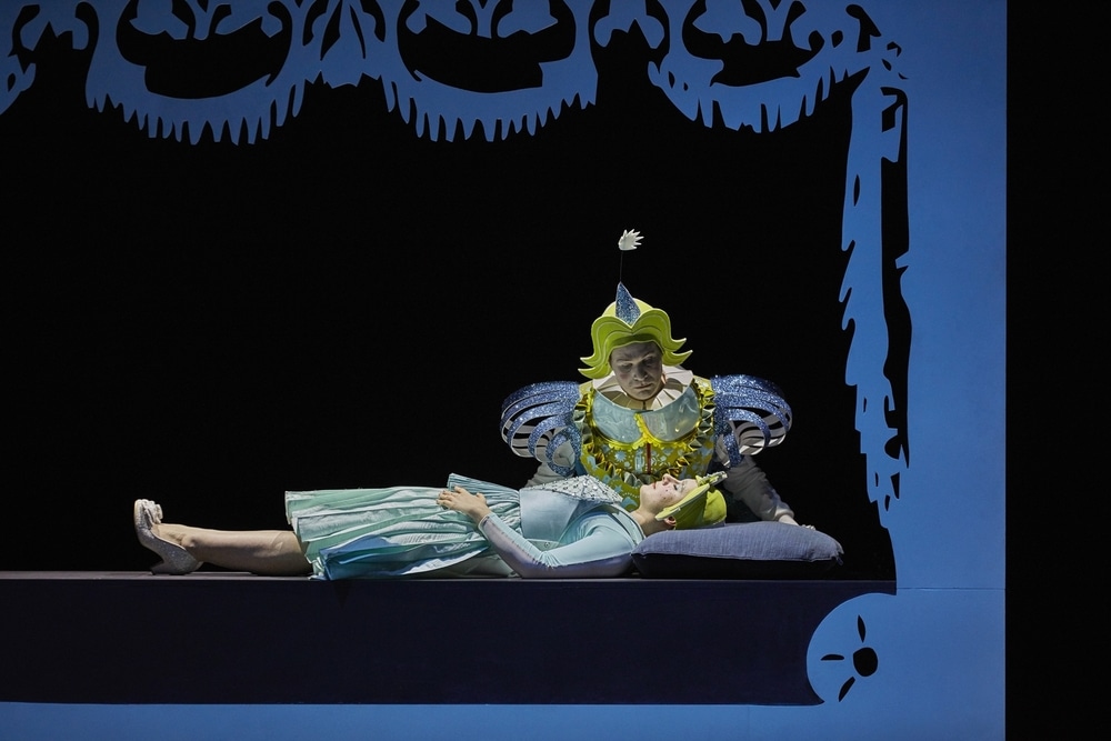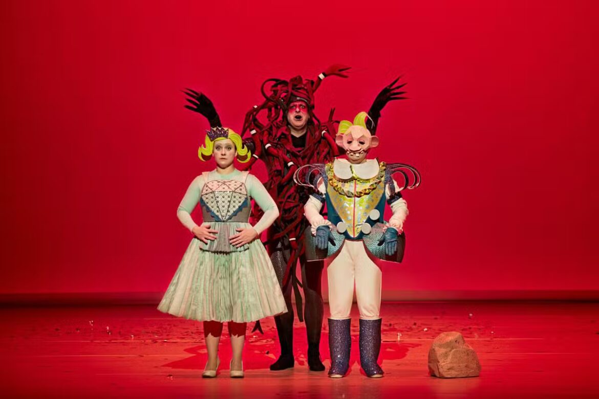 Reste un fameux quatuor : un Prince charmant / Riquet à la houppe plein de lui-même et de premier degré, drôle au possible, auquel Enguerrand De Hys donne beaucoup de charme. Une Fée Morgane (Julie Mathevet) aux notes magiques de coloratures mais quand même un peu blasée à intervenir dans la vie des humains, Anaïs Merlin, tour à tour Petit Poucet, Cendrillon, Chaperon rouge (dans une irrésistible pantomime lipsynchée) et Peau d’âne à l’accent bien paysan, donne toute la poésie et l’humanité nécessaire à ses rôles avec un déploiement vocal impeccable. Et bien sûr que serait un conte de fée sans un méchant à la hauteur ? La tâche échoit à Romain Dayez. On peine à reconnaître, même à l’oreille, le Guglielmo séducteur du revu et corrigé « Cosi Fan Tutti » d’il y a quelques mois à l’Athénée, tellement le chanteur use habilement de sa voix pour créer de toutes pièces un sorcier, quelque part entre un Michel Serrault qui doublerait un méchant de Disney et une hyène du Roi Lion. Le baryton s’adapte avec entrain et talent à une tessiture extrêmement haute pour offrir un Olibrius aussi extravagant que diabolique.