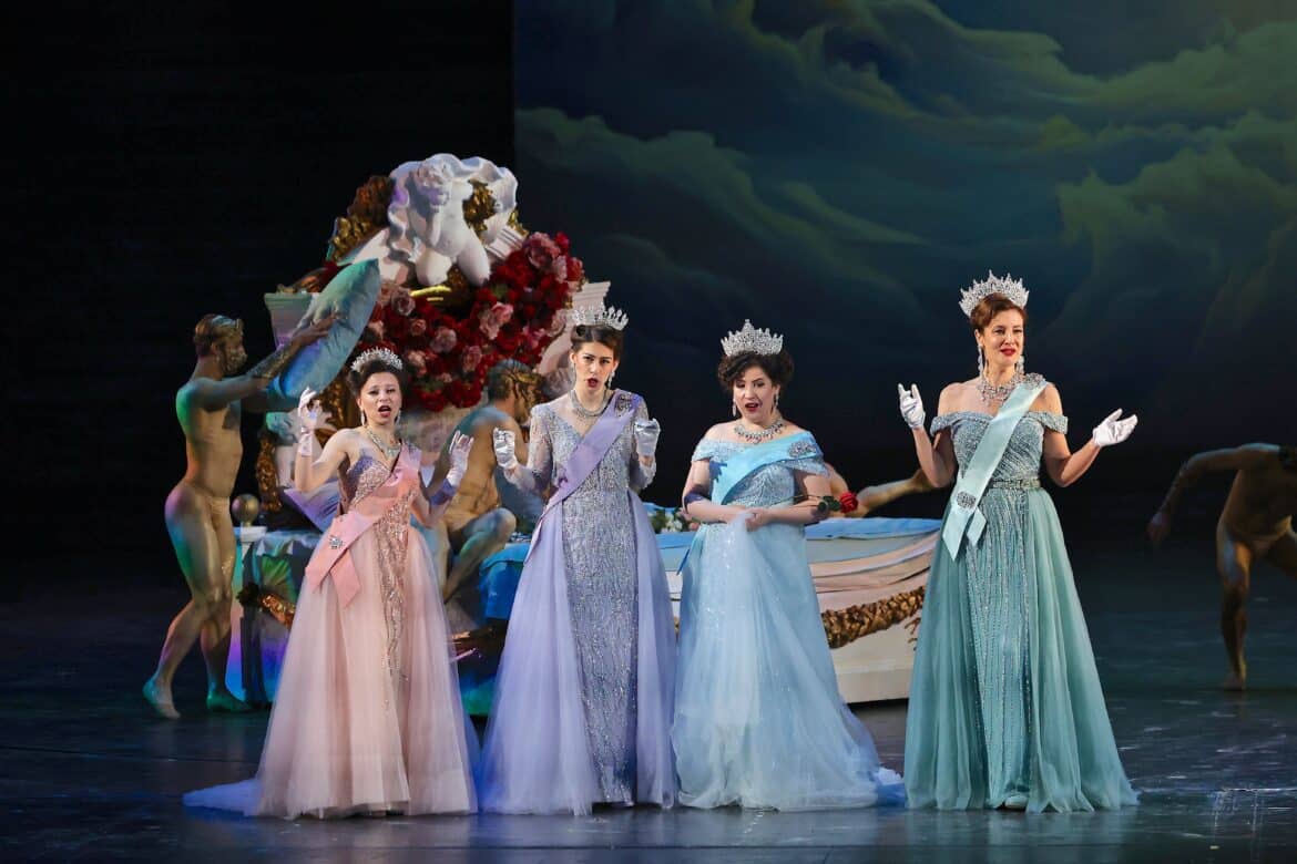 Les quatre reines, Anna Graf, Agnieszka Adamczak, Hagar Sharvit et Valentina Stadler, accomplissent un tour de force, gérant avec une grande précision l’imbrication complexe des quatre lignes mélodiques, tout en faisant des pitreries. Tuomas Katajala en Pollux et Timothy Oliver en Mercure contribuent à l’efficacité comique de l’ensemble par un jeu excellent et une interprétation musicale sans reproche.
