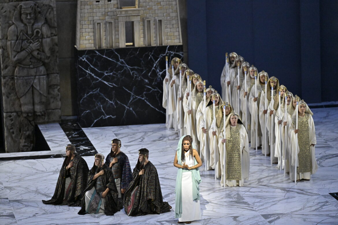 Las, comme l’arbre peut cacher la forêt, ces inénarrables trompettes induisent une idée fausse de l’architecture de l’antépénultième opéra de Verdi qu’on a trop souvent tendance à réduire à ses accents belliqueux et à l’iconique scène du triomphe. C’est oublier un peu vite qu’Aïda est principalement composée de conversations d’antichambre, de confidences et de prières qui en font l’une des partitions les plus intimistes du maitre de Busseto. Ce hiatus entre les attentes du public et la réalité de la musique explique très probablement le comportement parfois désinvolte d’une partie des spectateurs qui vont et viennent sans attendre l’entracte, sirotent un soda ou grignotent une barquette de frites au grand dam de leurs voisins mieux avertis de l’aridité de certaines pages d’Aïda.