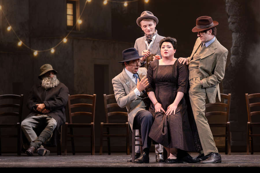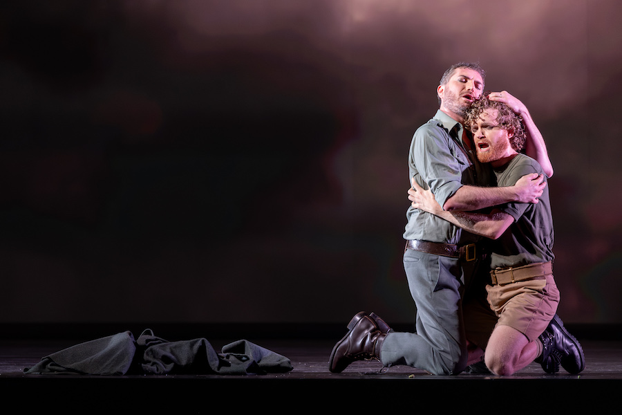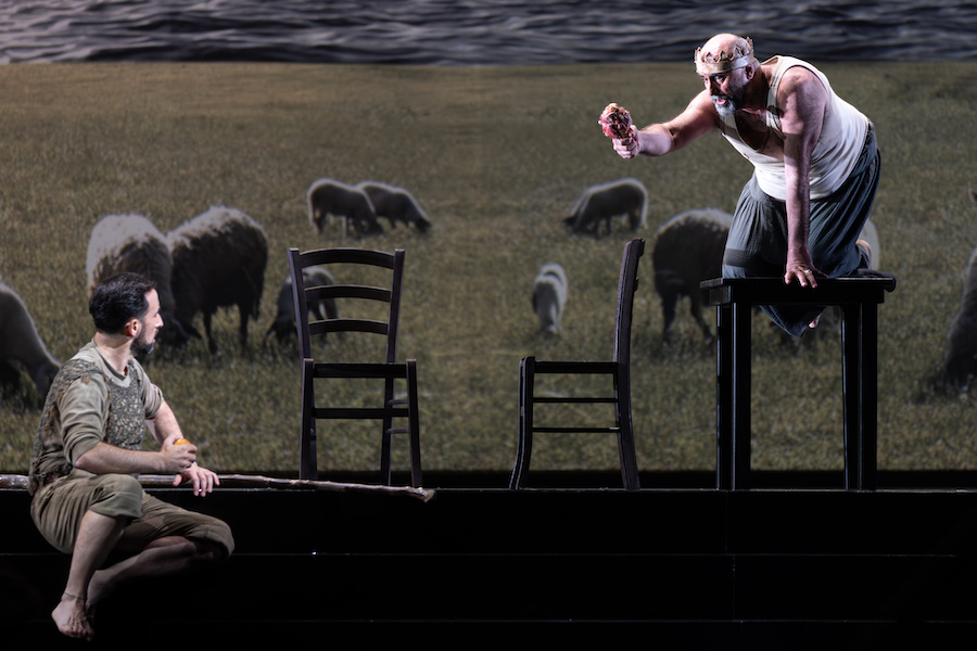 Ce n’est pas seulement l’aspect visuel du spectacle qui est cinématographique ; cinématographique est aussi le jeu libre des chanteurs/acteurs, de sorte que le texte austère de Badoaro se transforme en un scénario moderne. Tout cela grâce à une distribution d’excellence qui voit dans les deux protagonistes principaux les performances mémorables de Mauro Borgioni et de Margherita Maria Sala. Le premier, expert incontesté de ce répertoire, incarne un Ulysse d’une grande autorité vocale, à la diction splendide, au phrasé sculptural et à la présence scénique élégante. La seconde, Penelope, est une merveille d’intentions expressives, de somptuosité vocale, de timbre résonnant et de chaleur. Le bras en bandoulière en raison d’une blessure survenue lors de la répétition générale, elle a stoïquement mené à bien sa prestation, faisant preuve d’un professionnalisme remarquable. L’un des rares chanteurs non italophones était Jacob Lawrence, qui, outre une prononciation parfaite, a fait preuve d’assurance et d’une présence efficace sur scène dans son Télémaque en pantalon court et boucles fauves. Plein de tendresse, le beau duo avec son père est une page mémorable qui clôt ici la première des deux parties en lesquelles les cinq actes du livret ont été divisés.