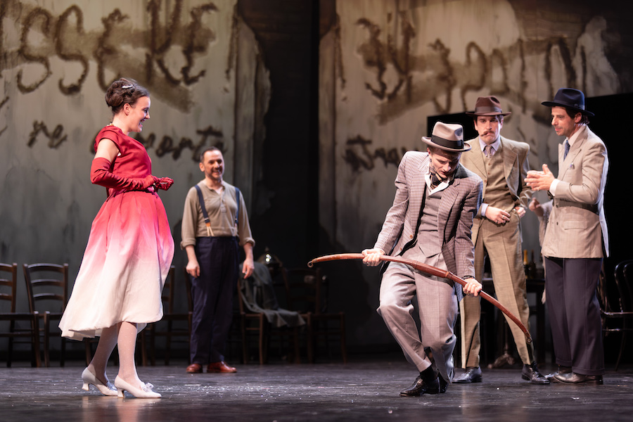 Les deux amants Eurymaque et Mélanthus, confiés à Alberto Allegrezza et à la soprano bulgare Alena Dantcheva, tirent leur épingle du jeu, tandis que la charmante Chiara Brunello incarne ici la vieille Ericlea avec beaucoup de bravoure. Les personnages humains sont complétés par le convaincant Eumete de Francisco Fernández-Rueda, Pisandro (Arnaud Gluck, un contre-ténor à la voix peu sonore), Anfinomo (le ténor Roberto Rilievi) et Antinoo (l’excellente basse Matteo Bellotto), les trois Proci que Livermore transforme en voyous arrogants. Parmi les déesses, nottons les présences somptueuses de Giulia Bolcato (Amore et Giunone), Cristina Fanelli (Fortuna) et surtout la Minerve transformiste d’Arianna Vendittelli à qui Monteverdi confie la partie la plus exigeante vocalement. Les dieux masculins ont la voix exceptionnellement large et variée de Luigi De Donato, Tempo sarcastique et Neptune très élégant, et de Valentino Buzza, comme d’habitude vocalement maniéré c’est ici plus acceptable dans le rôle de la divinité des divinités, Jupiter. Deux autres interprètes sont à mentionner : dans le prologue, Monteverdi et Badoaro nous montrent la fragilité humaine que le metteur en scène voit dans la nudité violée d’une femme, ici la talentueuse Chiara Osella, tandis qu’en tant que compagnon (et parasite) des Proci, il introduit le personnage d’Iro, cupide et matériel, que Livermore a gardé pour lui. En effet, se souvenant de son passé de ténor et de ses débuts ici même à Crémone en 1992, après 33 ans, Livermore revient ici en tant que metteur en scène et chanteur, chargeant son personnage grotesque de toute l’intelligence théâtrale accumulée au fil des ans et se targuant d’une solide performance vocale. Une participation avec laquelle il a voulu témoigner sa reconnaissance à ses professeurs de l’époque, en premier lieu Carlo Maier qui présidait le jury du concours vocal monteverdien, et un hommage à la figure bien-aimée du Divin Claudio.