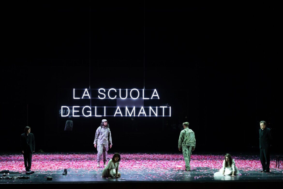 Les duos entre les deux sœurs sont vocalement magnifiques mais on a souvent du mal à y adhérer tant ce qui se déroule sous nos yeux est visuellement laid. Le constat est d’ailleurs le même pour les duos d’hommes. Comment savourer pleinement un chant quand on voit Ferrando et Guglielmo assis par terre avec un godemiché géant ?