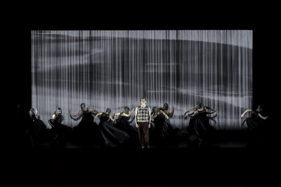 La première histoire est celle du sculpteur Pygmalion qui réussit à sculpter une figure féminine si parfaite qu’il la considère comme humaine et tombe amoureux de sa propre création. La figure se transforme en un être de chair et d’os et rend son amour à son créateur. Le Pygmalion incarné par Philippe Jaroussky est imaginé par Barrie Kosky comme un vieil homme à lunettes qui vit avec une poupée synthétique qu’il traite comme sa femme. Nous entendons ici le contre-ténor dans deux airs où l’on admire le style de l’interprète, dont la voix présente quelques faiblesses dans les aigus, compensées toutefois par la douceur de son émission et ses legato ineffables.