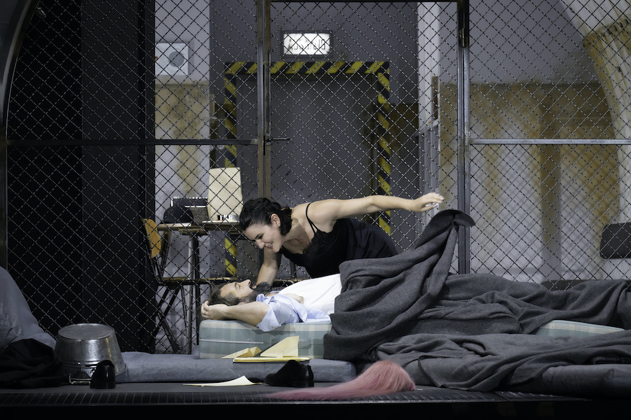 Olga Kulchynska se plonge dans le rôle de Cléopâtre avec un grand engagement vocal et théâtral, excellant dans les deux domaines. Au personnage revient une série d’airs magnifiques que la soprano ukrainienne interprète avec une grande intensité dramatique, une douceur de timbre, une homogénéité dans les passages de registres et les changements de couleurs pour accompagner la transformation du personnage : du déjà mentionné « V’adoro pupille » délicatement sensuel, au déchirant « Piangerò la sorte mia ». La voix sombre de Lucile Richardot conviendrait parfaitement au personnage de Cornelia, mais la contralto/mezzo-soprano française, qui possède unegrande projection vocale, exagère dans son expressivité, avec des effets qui frôlent la vulgarité et rompent la ligne mélodique, même si c’est peut-être pour mieux correspondre à la lecture du metteur en scène, qui la voit excessive dans tout ce qu’elle fait. Pour Sesto, la question se pose toujours de savoir s’il faut confier le rôle à une soprano en travesti ou à un contre-ténor. Ici, on opte pour la deuxième solution, mais Federico Fiorio, excellent acteur et très précis dans son agilité, a un volume limité et un timbre très adolescent par rapport à ce qu’exige le personnage. Avec Tolomeo, il est facile de dépasser les limites du bon goût, ce à quoi s’emploie Yuriy Mynenko : phrasé saccadé, émission discontinue… Mais le personnage est finalement bien là. L’Achilla du baryton moldave Andrey Zhilikovsky est très convaincant, avec une grande projection et une expression sombre pour ce personnage trahi par ceux qu’il a servis avec une dévotion excessive. Un autre contre-ténor, Jake Ingbar, prête sa voix au personnage ambigu de Nireno, tandis que Roberto Raso est un Curio solide.