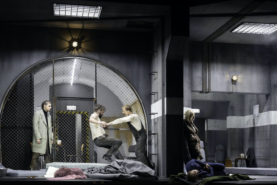 Les images que nous voyons sur scène sont familières à beaucoup d’entre nous qui, même sans avoir vécu une véritable guerre, en connaissent les représentations quotidiennes sur les écrans de télévision. Et nous ne sommes guère surpris par les scènes de violence, d’horreur et de torture que Ptolémée inflige à Cornelia, à Sextus, à sa sœur et, avant cela, à Pompée, le rival de César, à qui Ptolémée a offert la tête coupée du général romain sans penser à l’horreur et l’indignation ainsi suscitées : un Romain décapté par un Égyptien ! La musique de Händel s’adapte parfaitement à ces diverses situations grâce à sa force évocatrice et son caractère dramatique intrinsèque. Le seul moment de relative sérénité est celui du concertino qui accompagne le chant séducteur de Lidia/Cléopâtre : après l’explosion qui fait sursauter les spectateurs dans leurs fauteuils, l’ensemble de chambre apparaît au-dessus du bunker et entonne la musique céleste de « V’adoro pupille », tandis que César s’exclame : « Cieli, e qual delle sfere | scende armonico suon, che mi rapisce ? ». Mais ce n’est qu’une illusion : il y a ici très peu de véritable amour, c’est l’amour du pouvoir qui prévaut. Après tant d’événements dramatiques, le livret de Haym offre une lieto fine artificielle, absolument peu convaincante. C’est pourquoi l’interprétation de Tcherniakov (qui s’est déjà montré plus provocant), reflète ici pleinement l’esprit de l’œuvre, n’en déplaise aux partisans de la tradition qui, lors de la première, semblent avoir sifflé l’absence de péplos et de vestiges égyptiens.