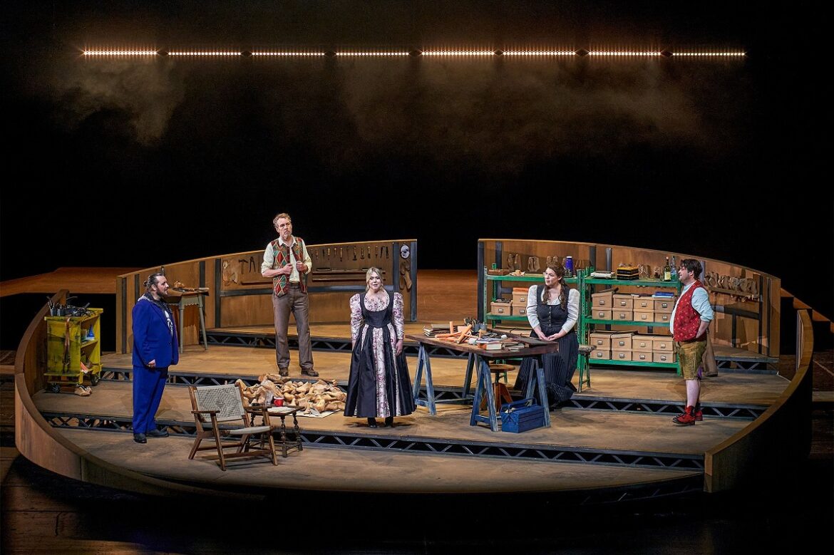 La basse sud coréenne Jongmin Park interprète son père l’orfèvre Pogner. Il impose une voix puissante et stable, mais peine parfois à donner chair à son personnage. Ya-Chung Huang (David), en remplacement de Matthias Stier, offre une incarnation touchante d’apprenti maladroit, amoureux sincère de Magdalene même si son timbre léger manque parfois d’éclat, notamment au premier acte alors qu’il initie Walter à l’art de l’ornementation. Christa Mayer (Magdalene) complète idéalement ce duo, autoritaire et tendre à la fois, donnant une belle couleur comique aux scènes domestiques. Enfin, l’ensemble des maîtres chanteurs, incarnés par une troupe homogène (Jordan Shanahan, Martin Koch, Werner Van Mechelen …), participe pleinement à la dynamique de comédie et à l’équilibre vocal de la soirée.