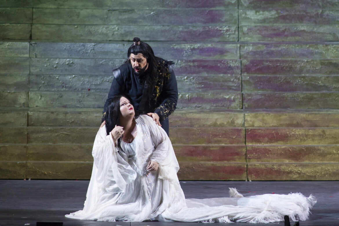 Depuis les dernières soirées où nous l’avons entendu – en particulier, lors de son récent Trouvère aux Chorégies d’Orange – nous avons tendance à observer chez Yusif Eyvazov une sorte de relâchement sur la durée de la performance. Certes, et nous l’avons souvent écrit, le chant est techniquement soigné – malgré un timbre peu attractif – permettant au chanteur de passer du forte et mezzo forte à la nuance piano ; de même, la vaillance est toujours au rendez-vous, comme en témoigne encore, lors de cette soirée, un hallucinant contre-ut tenu sur « Ti voglio tutta ardente d’amor ! », à la fin du deuxième acte. Pourtant, l’interprète semble souvent étranger à son personnage et il faut attendre « Nessun dorma ! » pour disposer, enfin, d’un moment de belle poésie musicale, chanté avec lyrisme et rigueur stylistique.