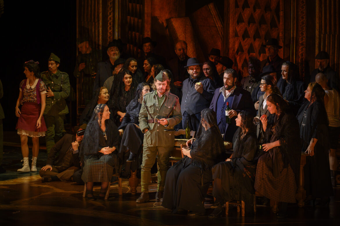 Car c’est un Faust musicalement « version longue » que nous propose Giampaolo Bisanti, avec l’air de Marguerite « Il ne revient pas », celui de Siebel « Si le bonheur », le tableau de Walpurgis, avec chœur des Feux follets et couplets du ténor « Doux nectar, en ton ivresse » (mais sans le ballet). On retrouve les qualités désormais bien connues de l’orchestre de l’Opéra Royal, précis, impliqué, avec quelques belles interventions solistes (poétique intervention du premier violon pendant l’air de Faust ; mélancolique chant de la clarinette introduisant la scène de la prison). Giampaolo Bisanti dirige avec fougue ; constamment attentif à l’avancée du drame, il y insère avec toute la délicatesse requise les parenthèses poétiques prévues par le compositeur qui semblent, ici ou là, suspendre le temps (la rencontre de Faust et de Marguerite lors de la kermesse ; le « Ô nuit d’amour, ciel radieux » de l’acte III). Bravo également au chœur maison qui, après quelques menus décalages dans la kermesse, fait preuve d’une implication dramatique et musicale sans faille, dans les moments d’effervescence comme dans les scènes plus recueillies (superbe prière a capella après la mort de Valentin : « Que le Seigneur ait son âme / Et pardonne au pécheur »…)