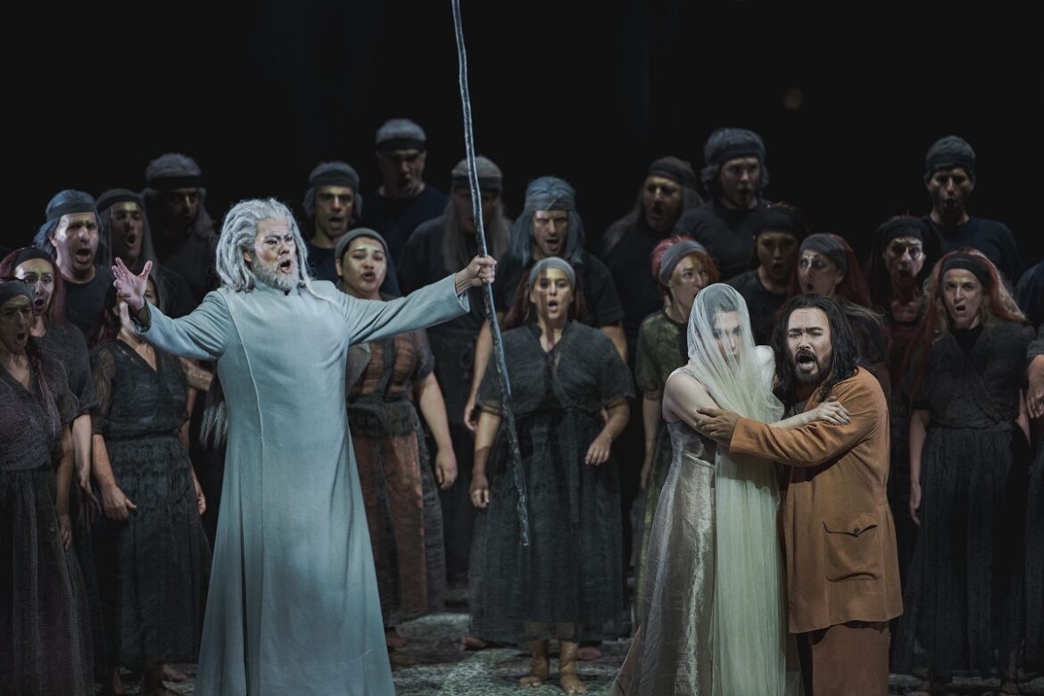Si la mise en scène ne convainc pas, la partie musicale sauve la soirée. Au pupitre,Jérémie Rhorer offre une interprétation équilibrée, attentive aux couleurs et aux dynamiques, capable de donner du souffle tant aux moments lyriques qu’aux moments dramatiques. L’orchestre du Maggio répond avec précision et brio, confirmant sa polyvalence. Parmi les chanteurs, Javier Camarena se distingue, Nadir à la voix lumineuse, capable de surmonter cette tessiture difficile et d’aborder les passages en voix de tête avec élégance et maîtrise. Le public lui a réservé des applaudissements chaleureux, conquis par le raffinement de son émission. À ses côtés, Lucas Meachem dessine un Zurga d’une rare intensité : puissant, tourmenté, traversé par des passions contradictoires – amitié, jalousie, amour, vengeance – que l’interprète rend avec une expressivité magnétique et une projection vocale étonnante. La soprano arménienne Hasmik Torosyan incarne une Leïla délicate et sensible, malgré un timbre un peu métallique qui enlève de la douceur à sa ligne vocale. La basse Huigang Liu est également solide dans le rôle de Nourabad. Le chœur, précis et bien préparé, ne trouve pas dans la partition de Bizet une écriture des plus efficaces : c’est peut-être dans ce domaine que le jeune compositeur, bien qu’héritier du Grand Opéra, montre le plus son inexpérience, les chœurs étant souvent statiques, peu différenciés, sans avoir la force théâtrale d’un Meyerbeer ou d’un Verdi.