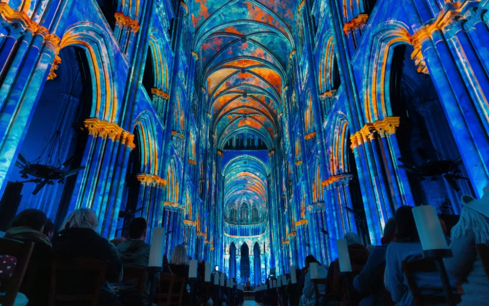 Cette technologie n’a finalement plus besoin d’un écran plat pour projeter un film en 360° dans les dimensions d’une cathédrale. Contribuant au mouvement de spectacularisation, on se demande si l’étape suivante ne serait pas de transformer l’église en une salle de cinéma maximaliste et en espace publicitaire comme le font déjà Nokia, Samsung ou BMW. Avec la bénédiction de l’évêque, il faut dire que cette « expérience immersive » au volume sonore « augmenté » rejette au millénaire précédent l’idée que la cathédrale serait une oasis inviolée de sérénité et de mystère.