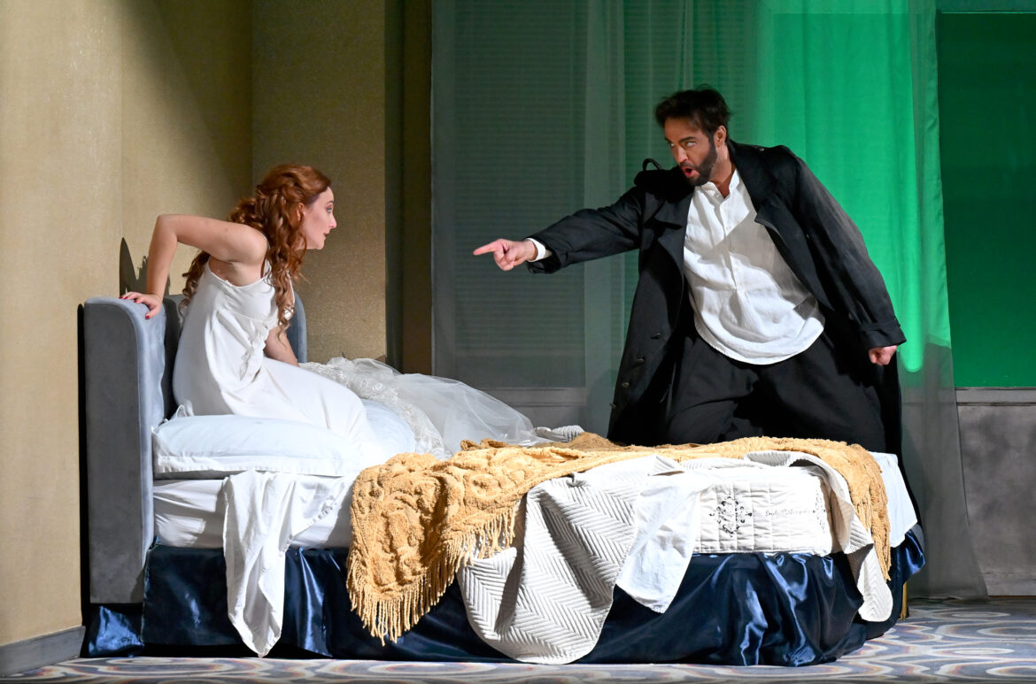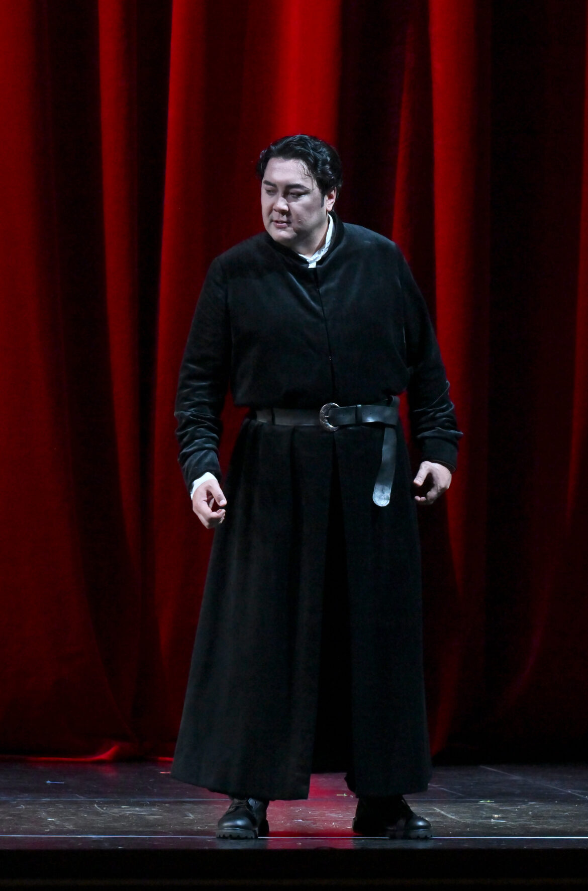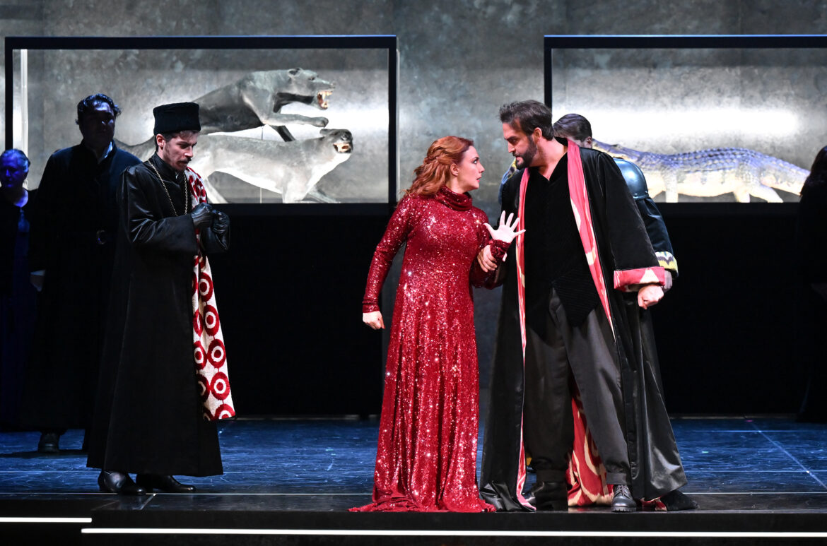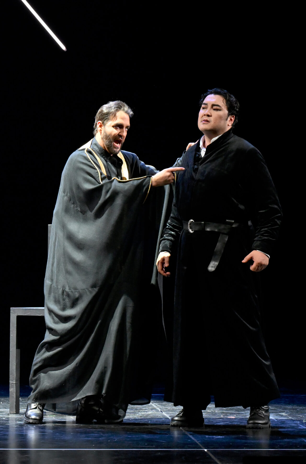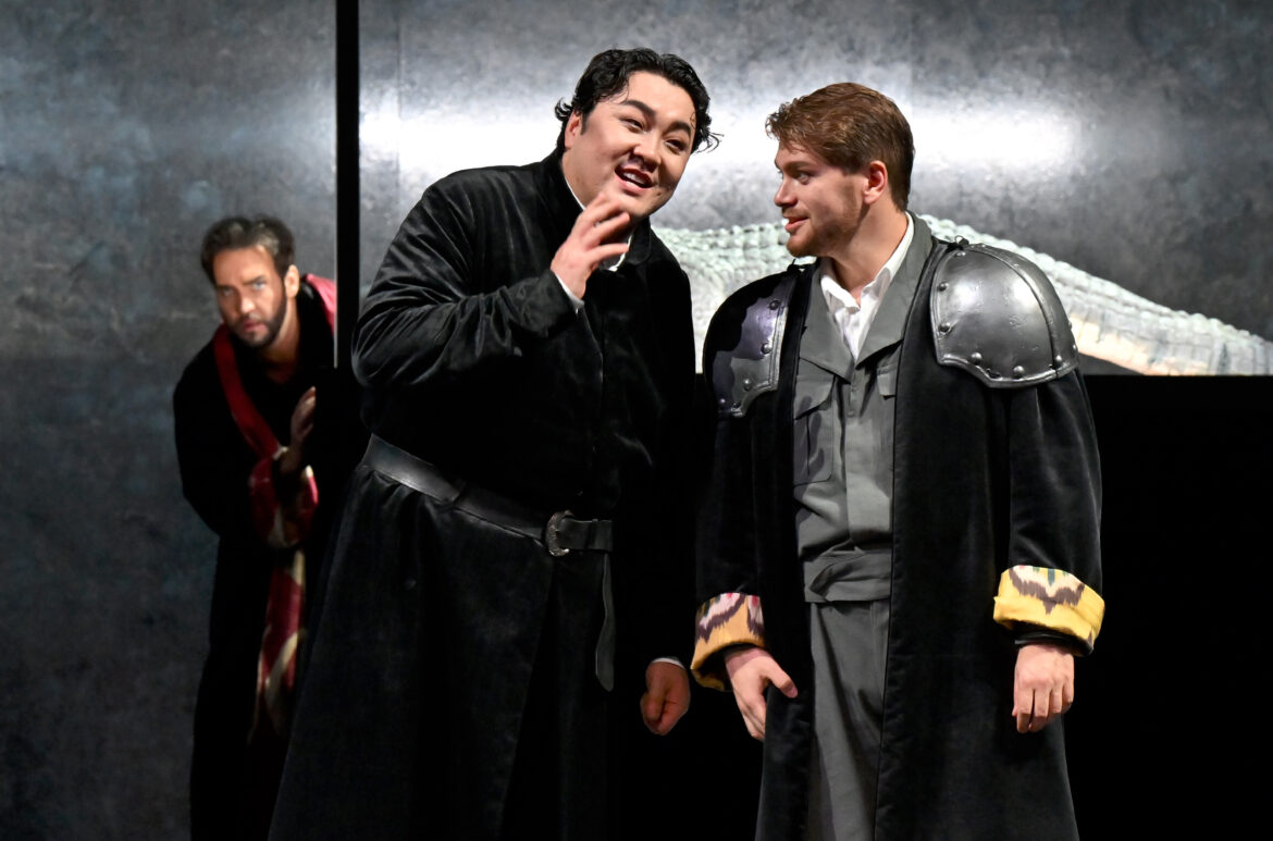 Face à lui, le baryton Ariunbaatar Ganbaatar (Iago), qui incarnait la veille des personnages pétris d’humanité (Luiser et Rigoletto), déploie ici une noirceur fascinante, avec un “Credo” qui fait littéralement frémir la salle ! Le phrasé incisif du chanteur lui permet par ailleurs de traduire toute la duplicité du personnage avec un naturel glaçant. Une incarnation parfaitement maîtrisée vocalement et dramatiquement, saluée à juste titre par des applaudissements enthousiastes. Ce duel vocal entre Jagde et Ganbaatar aura sans aucun doute constitué l’un des sommets de la soirée !