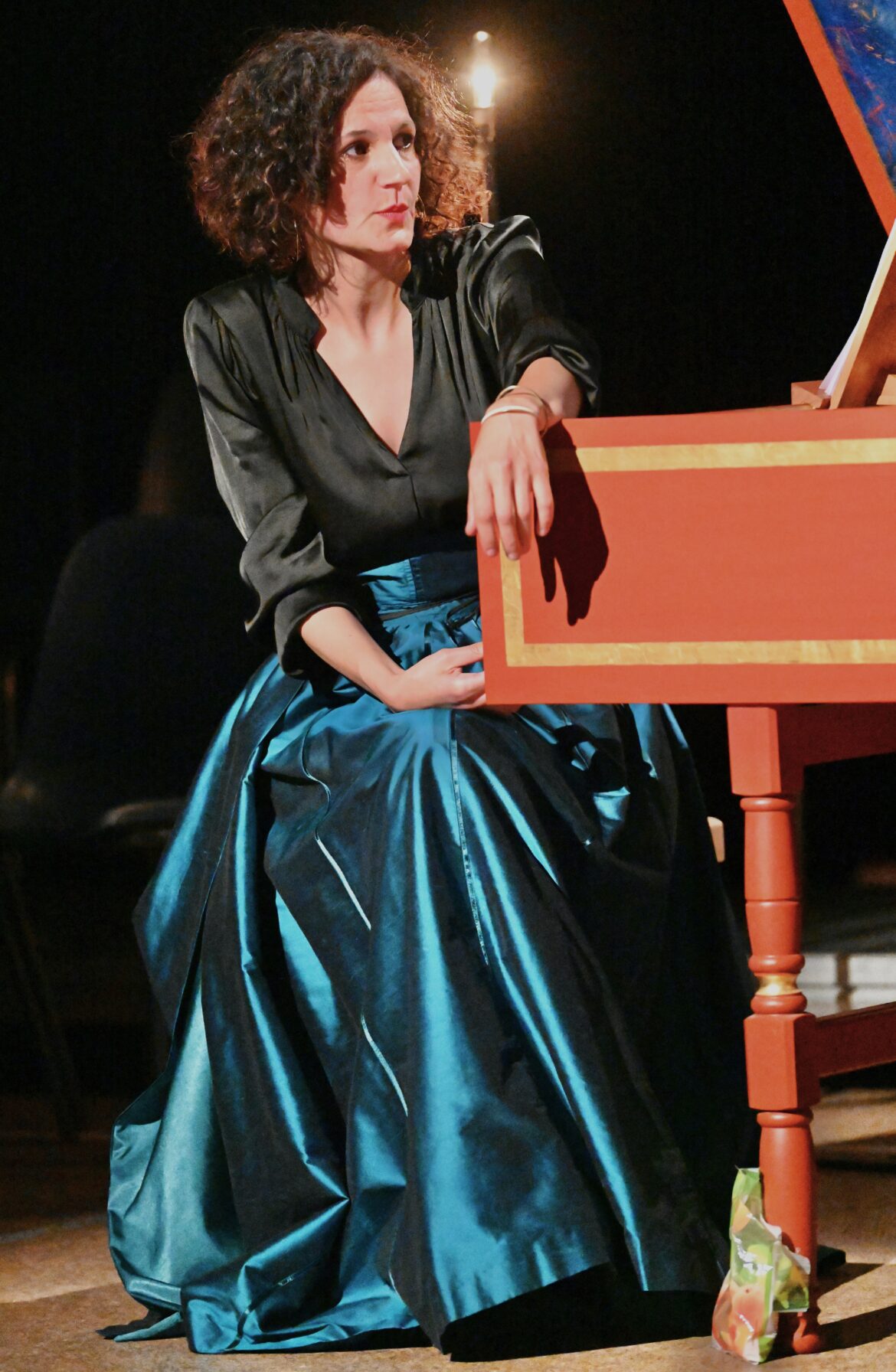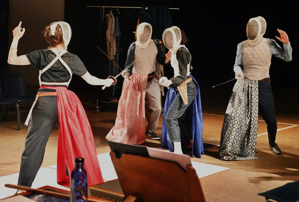 Sur le plateau, Jean-Michel Fournereau signe une mise en scène d’une sobriété désarmante. Ici, pas de reconstitution, pas de poudre à perruque, pas même de clinquant. Un clavecin, une viole de gambe, des épées, un portant, quelques bribes de costumes et tout l’imaginaire s’y engouffre. Le théâtre fait le reste. Nous voilà au cœur d’une mise en abyme. Une chanteuse répète sous le regard d’un metteur en scène qui la pousse à se mesurer à son double historique. Les musiciens sont complices, les gestes hésitent parfois entre jeu et vérité. Ce fragile entre-deux, cette oscillation constante, c’est le sel et le poivre du projet, le plaisir de brouiller les frontières, d’abolir la distance entre la scène et la vie, entre hier et maintenant.