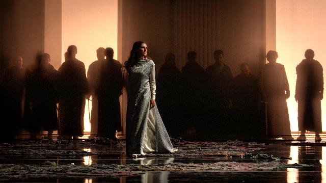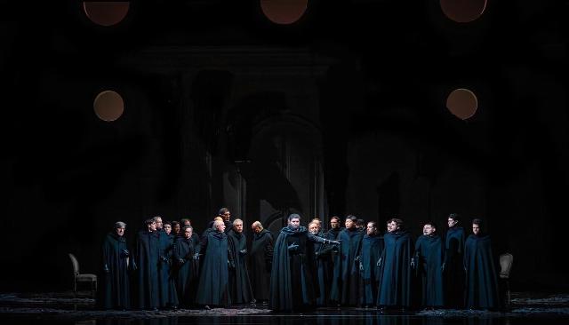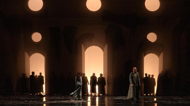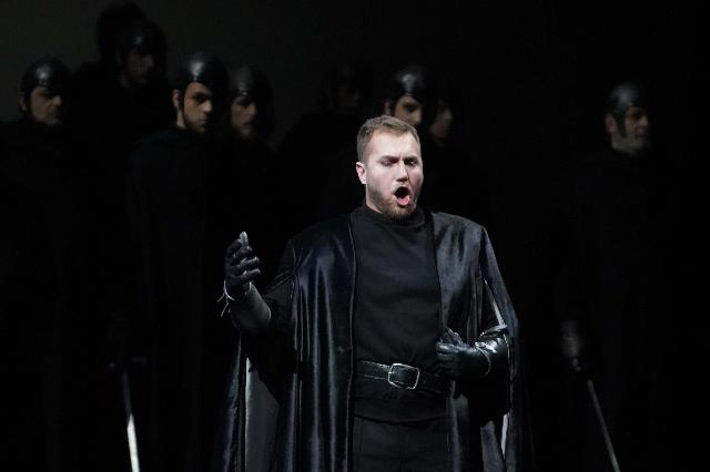 Dès les premières annonces, il y a plusieurs mois, l’un des objectifs de la trilogie de Plaisance était de respecter la partition originale de Verdi, ce qui a impliqué que la célèbre cabalette de Manrico « Di quella pira » soit interprétée avec le da capo et sans la note aiguë finale. La prestation de Meli a été remarquable : sa voix limpide, son élan passionné et son phrasé soigné ont été chaleureusement applaudis. Le décor conservé pour les trois opéras a, en revanche, considérablement réduit les scènes. Ni montagnes, ni campement, ni tours : la scène était en grande partie dépouillée. Les jeux d’ombres et de lumières ont toutefois bien rendu l’atmosphère de l’opéra. De plus, le mime sinueux vêtu de noir qui, dès Rigoletto, incarnait la malédiction et le destin adverse des personnages, a renforcé l’effet funeste de l’histoire.
