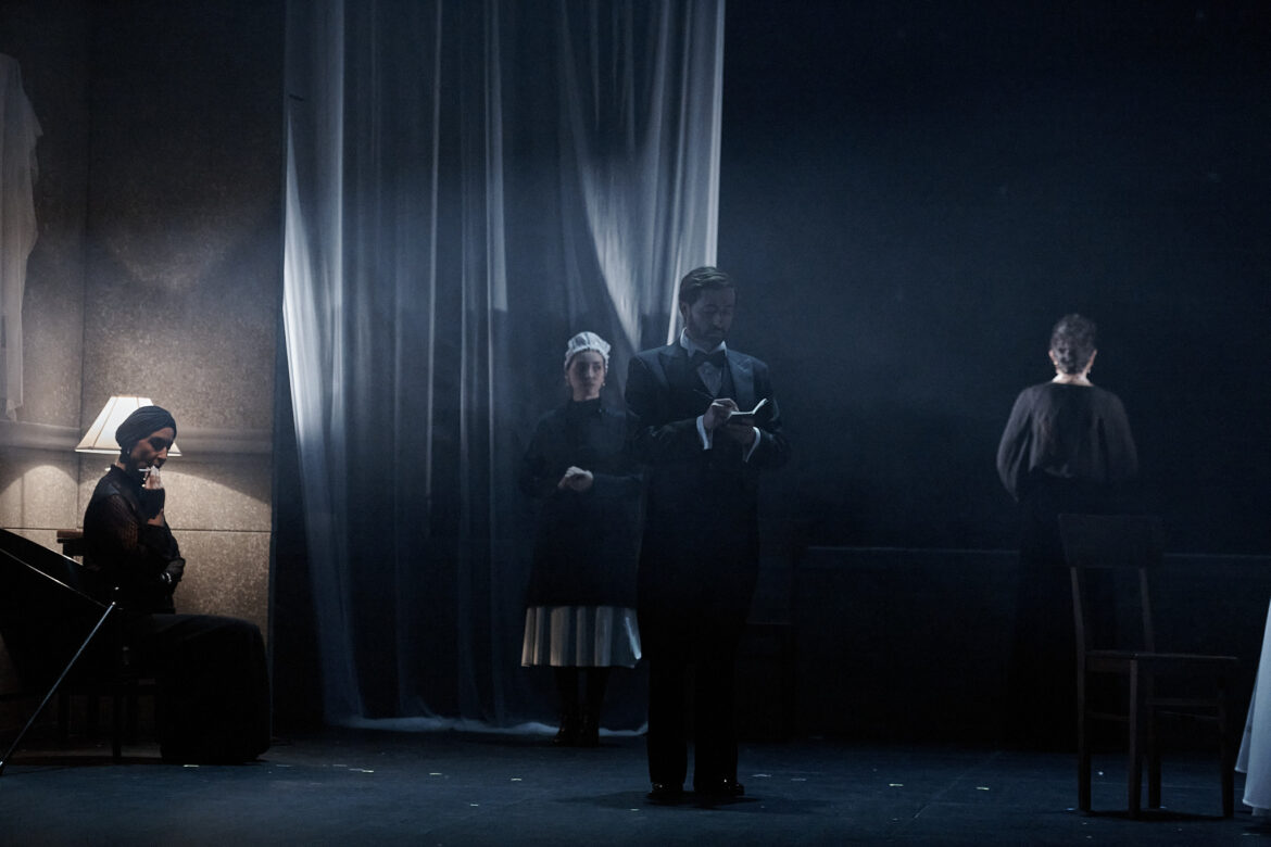 Disons-le d’emblée : le public portugais ne pouvait espérer meilleure introduction à l’opéra de Barber. Avec une économie de moyens au diapason de l’atmosphère intimiste de l’œuvre – proche du kammerdrama scandinave, comme l’était déjà le Julie de Boesmans d’après Strindberg -, la metteuse en scène Daniela Kerck propose une lecture d’une probité rafraîchissante. Le traitement du décor – un lieu unique redessiné au fil des actes par la redisposition du mobilier, de hauts voilages translucides, les lumières subtiles de Sérgio Moreira et des projections vidéos distillées avec une parcimonie bienvenue – obéit au même souci de lisibilité. Aucun filtre idéologique plaqué, aucune tentative de modernisation/actualisation/déconstruction ne venant faire écran à l’œuvre, les spectateurs ont tout loisir d’apprécier et d’interpréter par eux-mêmes ce qui se joue sous leurs yeux. La metteuse en scène fait confiance à la musique de Barber et aux paroles de Menotti pour faire passer le message, ce qui n’est plus si fréquent dans le paysage lyrique actuel.