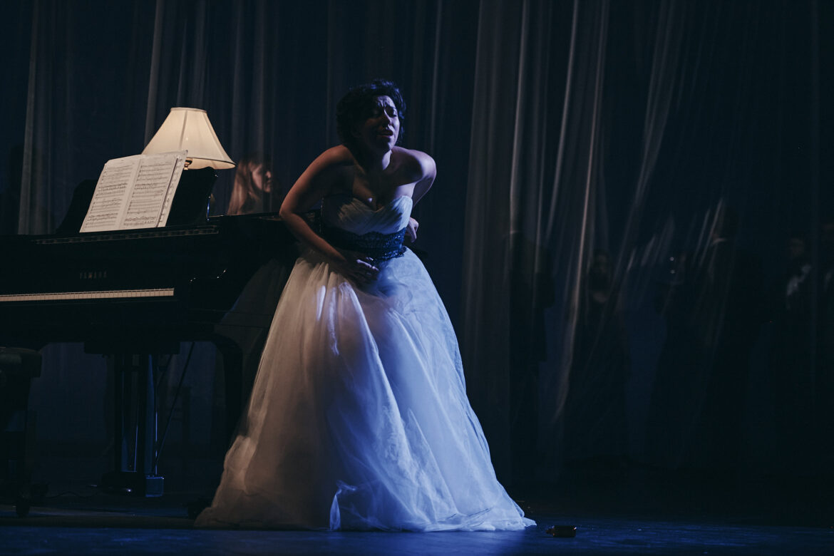 Terminons par les deux héroïnes de la soirée. Beatriz Volante, entendue dans Dido and Aeneas de Purcell et Le Petit Poucet d’Isabelle Aboulker pendant l’OperaFest, prête à Erika une caractérisation nuancée, à l’image de son timbre de soprano. Comme son personnage, sa voix passe d’une certaine neutralité distante – son aria « Must the winter come so soon… », déclamée avec une tonalité songeuse, presque absente – à une fébrilité amoureuse, puis à une dureté de plus en plus marquée à mesure qu’elle perce à jour les intentions d’Anatol. Il y a une certaine ingratitude à incarner ce rôle dépourvu de musicalité saillante – ce qui avait amené Rosalind Elias, sa créatrice, à exiger de Barber qu’il lui écrive au moins un air -, alors même qu’Erika constitue le moteur du drame. Dès lors, il appartient à Volante d’insuffler de la vie dans ses séquences mi-parlées mi-chantées, ce qu’elle réussit admirablement. On garde de sa prestation plusieurs images marquantes : sa condamnation éclatante de la naïve Vanessa à la fin de l’acte I ; sa supplication lorsqu’elle rampe, dans sa robe ensanglantée, derrière la Baronne silencieuse ; et sa façon de clore l’opéra en dictant ses ordres au Majordome, dans un recto tono marmoréen.