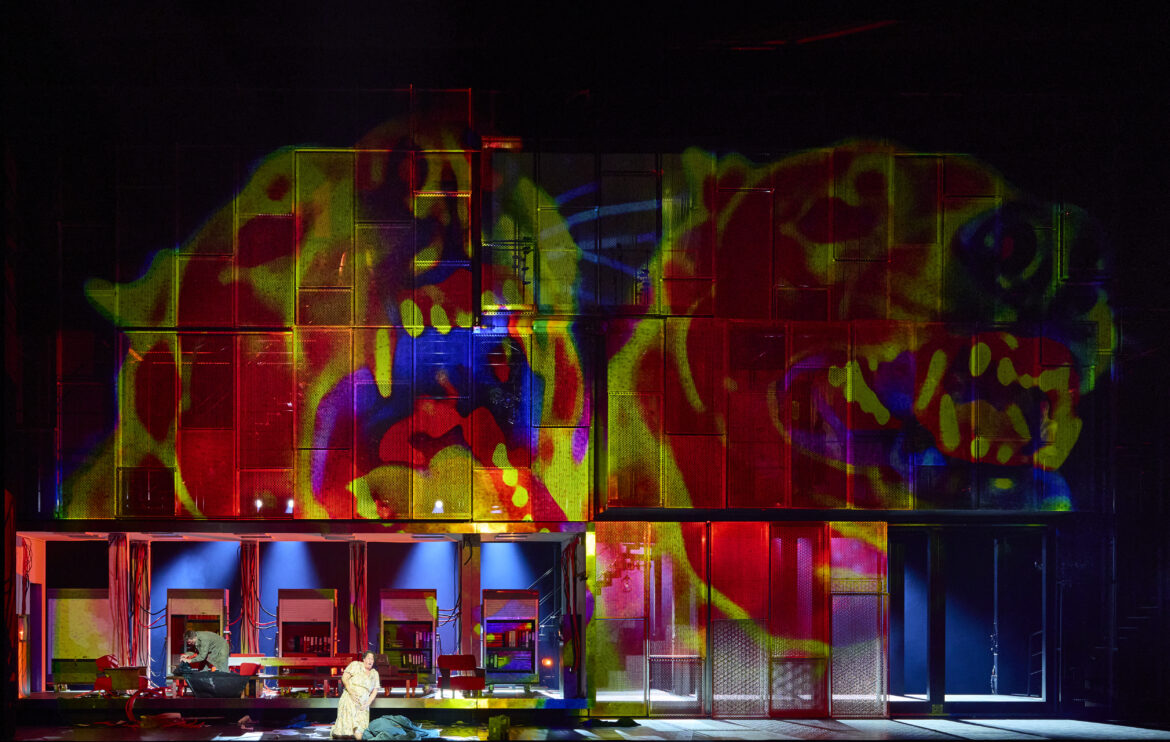 En plongeant le spectateur face au défi d’un mythe revisité par des considérations très actuelles, Bieito fait feu de tout bois pour donner une expression visuelle sombre et dérangeante (magnifiée par des éclairages virtuoses), capable de susciter la réflexion sur les enjeux évoqués, toujours à l’œuvre en sous-texte des événements de La Walkyrie. Tout le flot chaotique de l’imagination délirante des images projetées sur l’immense décor métallique participe de cet état d’esprit, qui incite à mettre à distance les éléments les moins reluisants du Ring, tels que le patriarcat triomphant ou la misogynie infantilisante. La dénonciation omniprésente des méfaits de la guerre est aussi au cœur de cette réflexion, à mille lieues d’un livret plus enclin à saluer l’héroïsme des combattants.