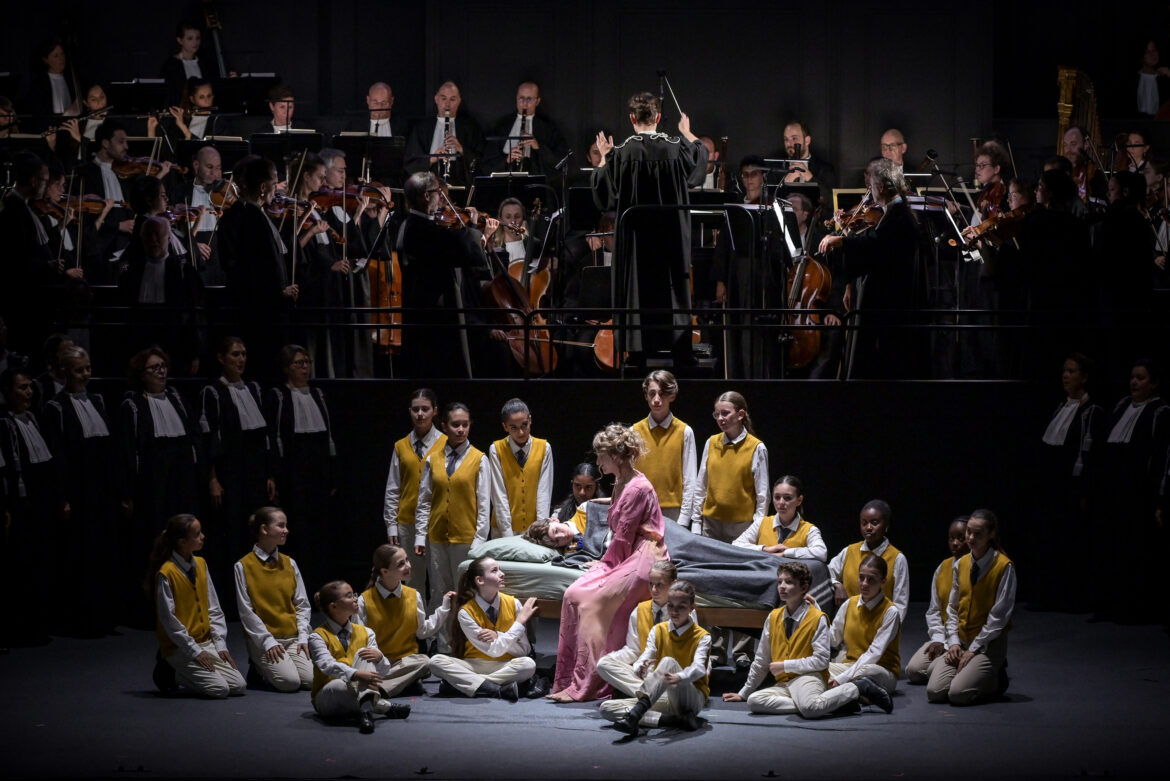 Evidemment pour un Faust convaincant, il faut un Méphisto bien incarné, et Christian Van Horn endosse un rôle qui lui va, scéniquement et vocalement, comme un gant. Malgré une élocution parfois approximative, le baryton n’a pas besoin d’effets de manche pour imposer son charisme naturel, et l’on apprécie particulièrement avec quelle aisance sa voix se fond à celle du Chœur de Radio France. Un chœur (au rôle prépondérant dans cette œuvre) qui fait preuve d’une belle implication et d’une belle puissance malgré la difficulté de la partition et du défi que représente la juxtaposition complexe des différentes lignes vocales. On notera cependant un léger manque d’homogénéité avec des voix masculines prenant parfois un peu trop le dessus, sans toutefois gêner l’écoute. Et c’est avec beaucoup de plaisir que l’Apothéose enveloppe le public avec la montée au ciel de Marguerite, lorsque la Maîtrise de Radio France rejoint le Chœur sur scène pour un beau finale sous la baguette de Jakob Lehmann.