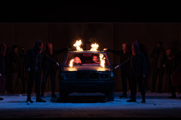 Dans la vision de Coppens, l’action se déploie dans un décor urbain de béton et de voitures : véhicules rutilants ou abandonnés, promis à la casse ou à l’errance. Les personnages semblent perpétuellement en transit, sans destination véritable, condamnés à un mouvement circulaire. Le problème tient précisément à ce postulat : s’il est intellectuellement recevable, il n’éclaire en rien le drame de Norma en particulier. Ce concept pourrait s’appliquer indifféremment à une multitude d’œuvres du répertoire — de Káťa Kabanová à Boris Godounov, de Pelléas et Mélisande à Agrippina, de Così fan tutte à Wozzeck. Il reste donc fondamentalement générique.