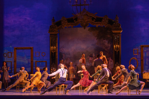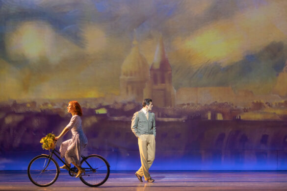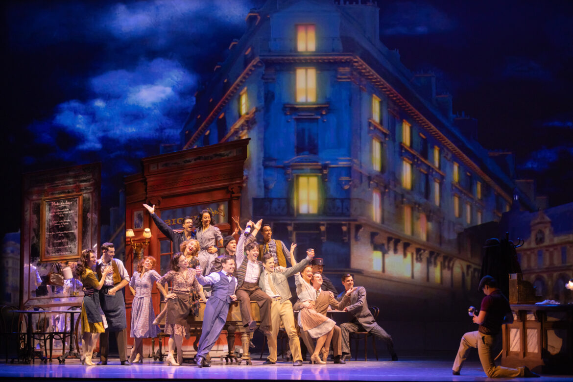 La mise en scène et la chorégraphie de Christopher Wheeldon sont une absolue réussite. En un clin d’œil et comme par magie, les tableaux se succèdent : un piano disparaît et fait place à une tour Eiffel ; la loge de Lise s’évanouit et est remplacée par la scène du Châtelet (avec vue sur la fosse d’orchestre et les fauteuils des spectateurs) ; les quais de la Seine font place en un instant au salon des Baurel… C’est on ne peut plus spectaculaire tout en restant miraculeusement léger, fluide, et surtout d’une élégance et d’une poésie constantes. Qu’il s’agisse d’évoquer le Paris de l’immédiat après-guerre (dès le tableau initial), l’intimité des scènes d’intérieur, le rayon parfumerie des Galeries Lafayette ou un cabaret de Montmartre, les décors (de Bob Crowley, qui signe aussi les superbes costumes), d’une remarquable force évocatrice, se meuvent sur scène comme par magie, redessinant constamment l’espace et contribuant pleinement à la narration sans jamais l’alourdir.