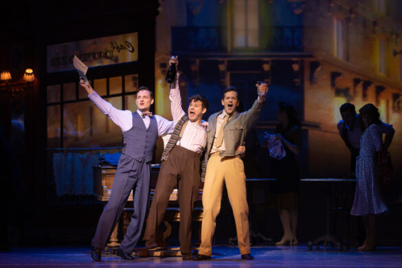Sur scène, la troupe d’artistes rallie tous les suffrages. Les rôles principaux éblouissent par leur virtuosité et leur aisance à chanter, danser et… chanter tout en dansant ! Le casting, particulièrement habile, repose sur des personnalités nettement différenciées, tant physiquement que vocalement. Robbie Fairchild incarne un Jerry Mulligan irrésistible de romantisme léger et souriant. Max von Essen, en Henri Baurel, est absolument remarquable : fort de ses nombreux succès sur les scènes américaines, il excelle à traduire la timidité, les hésitations et les questionnements du personnage. Il fait par ailleurs montre d’une fort belle assurance vocale dans les parties chantées. Etai Benson est parfait en Adam Hochberg, notamment dans la scène hilarante où il tente de séduire Lise Dassin avec une maladresse savoureuse. Ces trois voix masculines possèdent leurs particularités propres, qui leur permet de se distinguer clairement y compris lorsqu’elles s’unissent dans des numéros de trio emblématiques comme le ‘S Wonderful du premier acte.