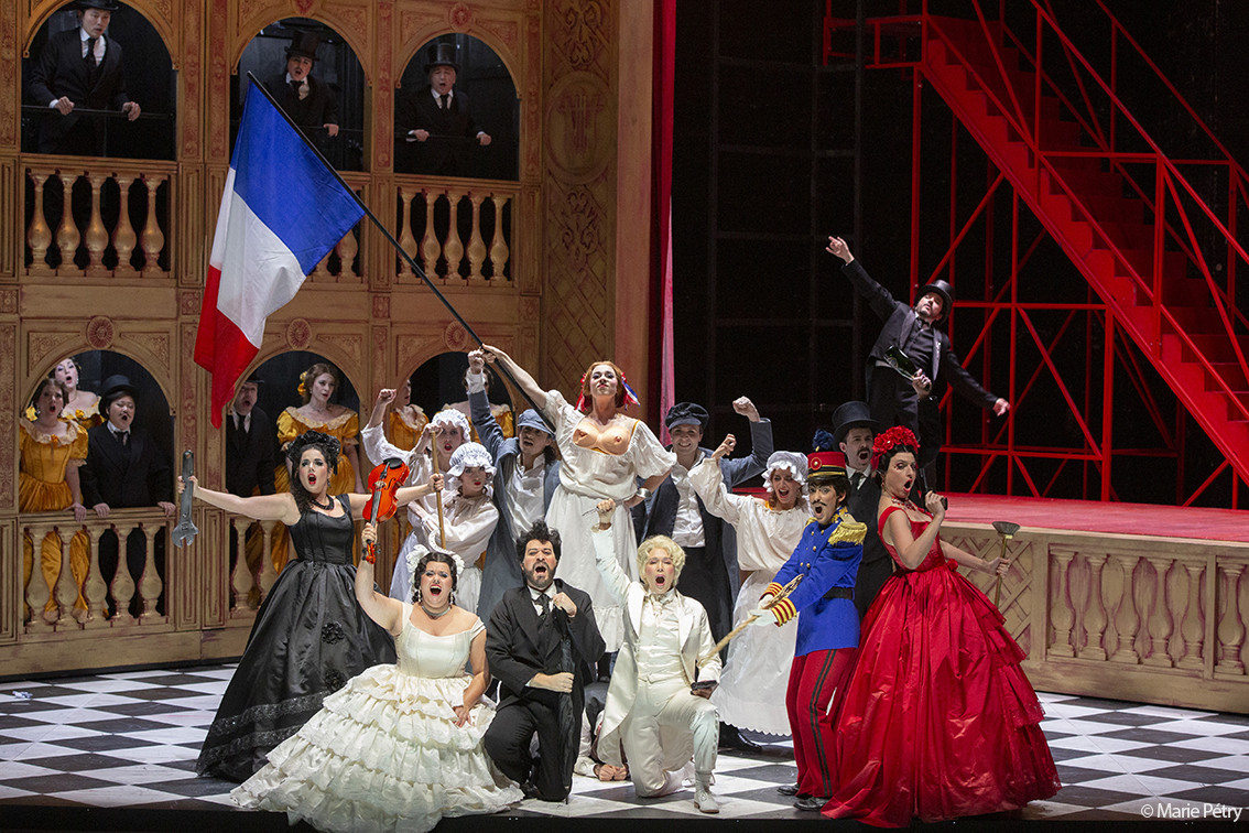 La réussite du spectacle doit aussi beaucoup aux décors et costumes de Pierre-André Weitz, complice fidèle d’Olivier Py, ainsi qu’aux chorégraphies pleines de fantaisie d’Ivo Bauchiero, également responsable de la reprise de cette mise en scène. Mention spéciale pour le cancan final, exécuté avec un enthousiasme communicatif par l’ensemble de la troupe, solistes compris !