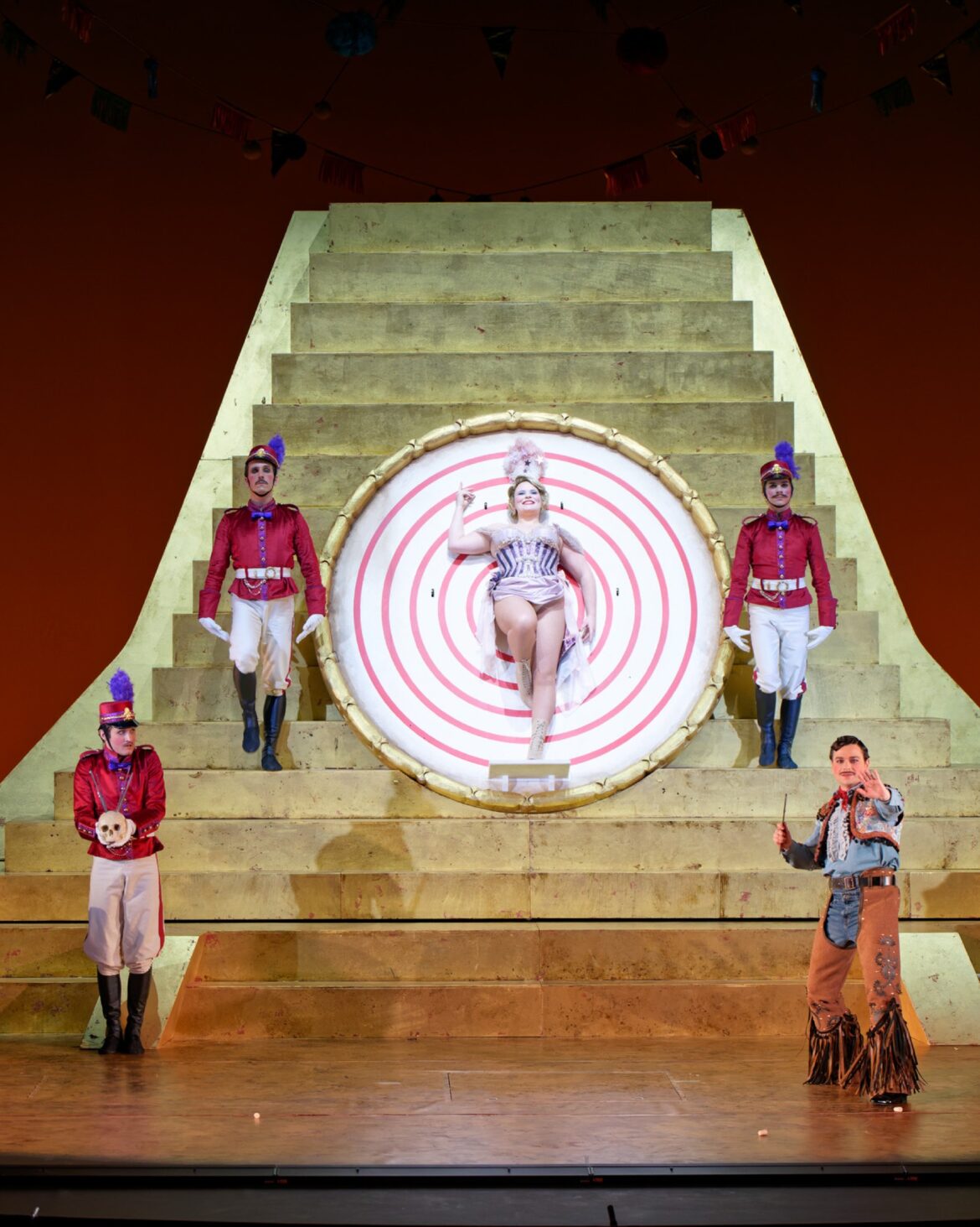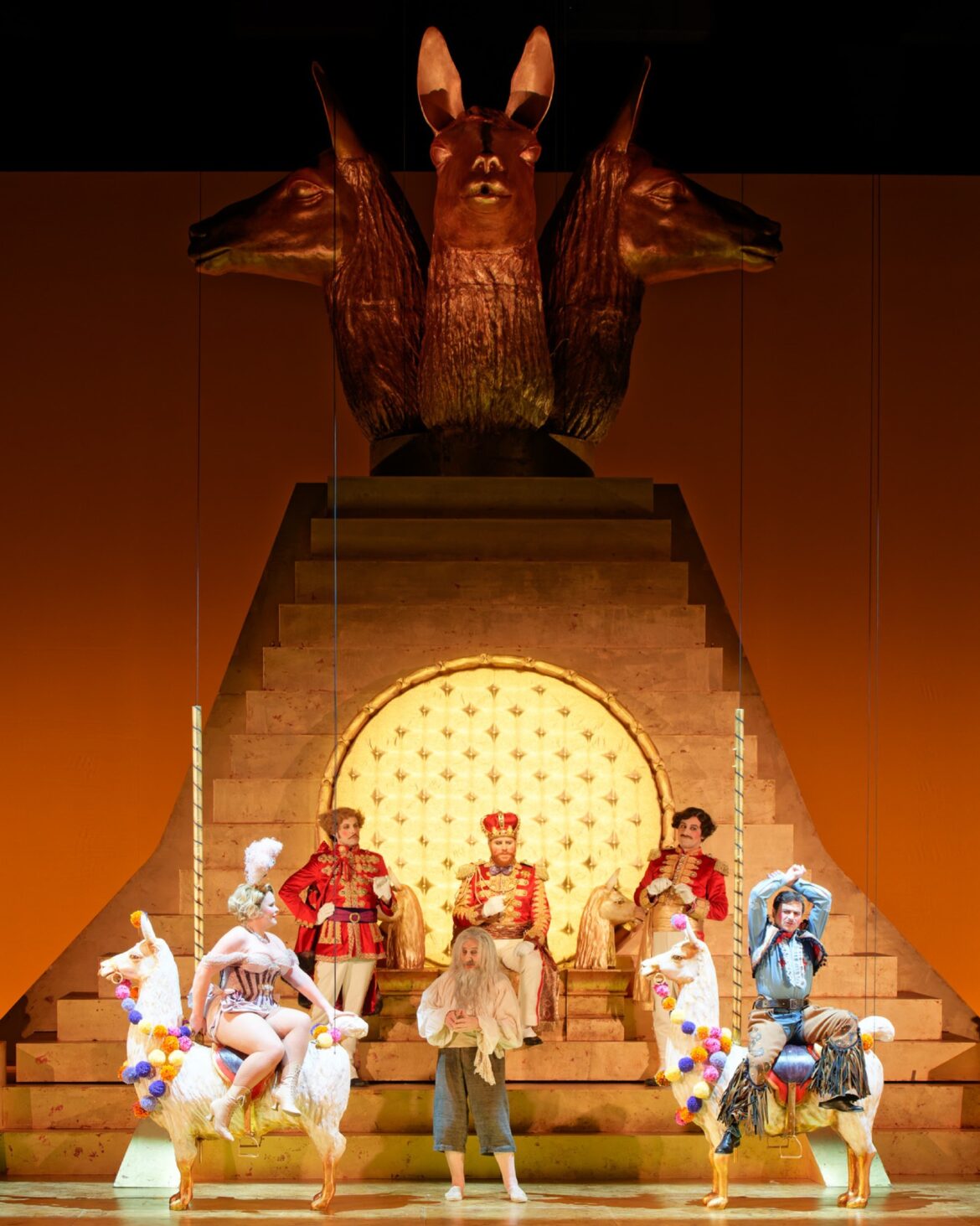L’intelligence de la proposition scénique tient avant tout à ce qu’elle ne cherche ni à intellectualiser le propos, ni à surligner lourdement les allusions politiques, sociologiques ou parfois légèrement grivoises du livret. Jean-Christophe Mast opte pour une transposition légère dans le Second Empire d’Offenbach, « un Second Empire qui rêve au Pérou, transforme l’imaginaire colonial en un véritable parc d’attractions avec, pour  figure tutélaire, un lama, figure tutélaire d’un pouvoir enfantin » (note d’intention du Programme de salle).