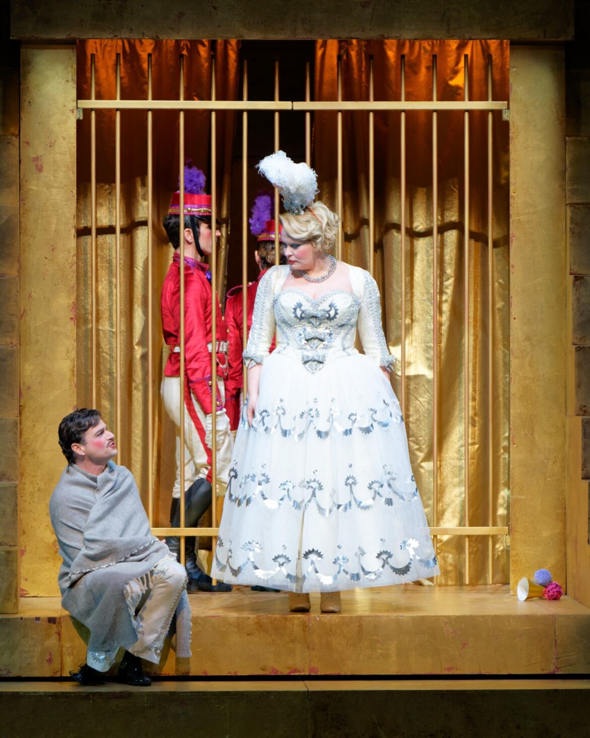 Vocalement, la soirée constitue une superbe réussite d’ensemble. On a pu entendre des vice-rois plus impressionnants vocalement que Florent Karrer, dont la voix pourrait se projeter avec plus d’arrogance dans ce rôle de monarque peu scrupuleux et sûr de lui. Le chant du baryton français n’en demeure pas moins très assuré. Surtout, Florent Karrer évite toute outrance qui viendrait altérer la ligne musicale, et compose un personnage réellement savoureux, notamment lorsqu’il apparaît affublé de ses costumes improbables, que ce soit en super-docteur au premier acte ou en geôlier à l’acte III.
