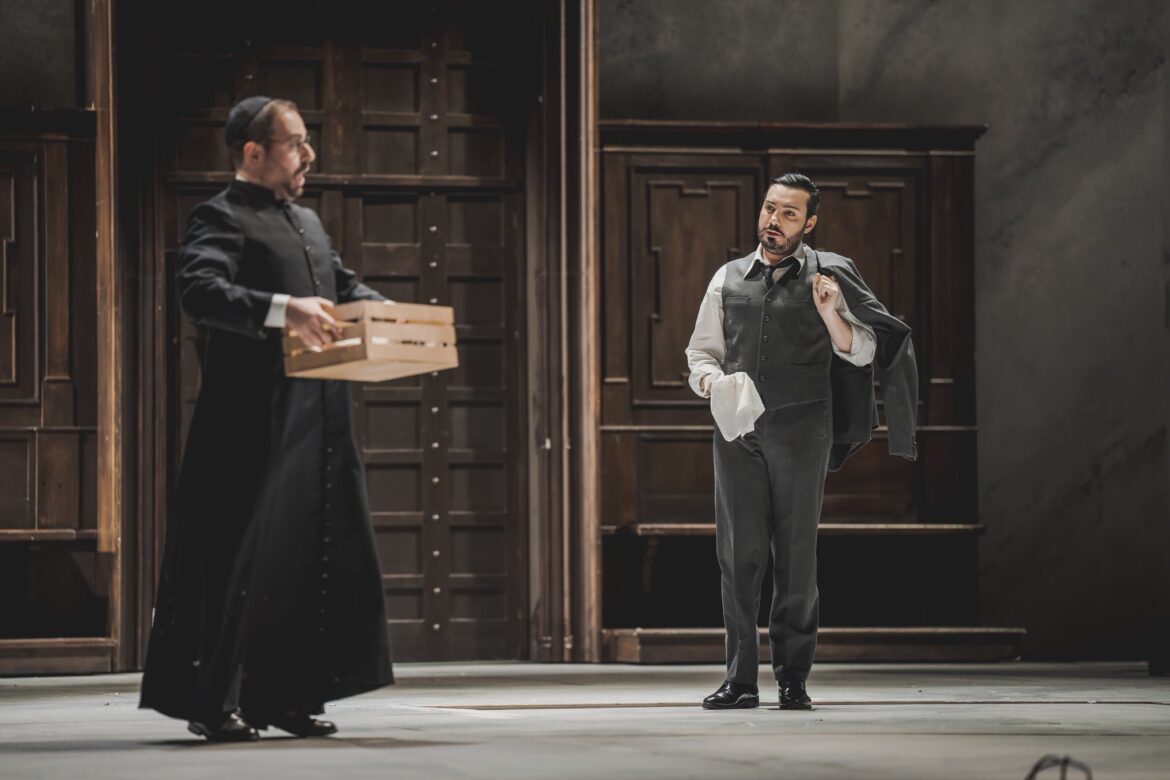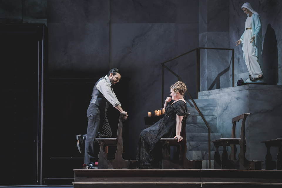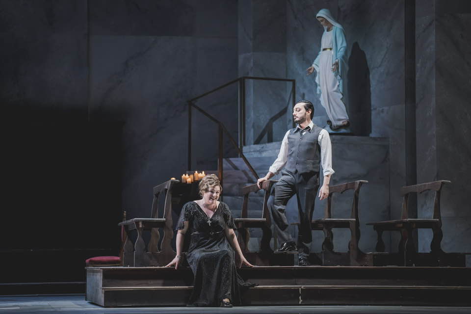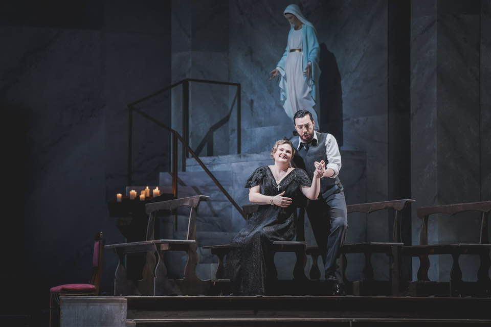 Dès les premières mesures, on sent la présence d’un bon chef d’orchestre à la barre ; Michele Gamba privilégie une direction détendue, accompagnant les chanteurs sans les dominer. Si la tension dramatique est palpable par moments, l’accent est mis sur des tempi lents, presque langoureux dans la scène de la prison au troisième acte. Chiara Isotton captive immédiatement le public par sa voix puissante (une soprano lyrique proche du spinto), mais aussi souple et riche – indéniablement une voix de Tosca, rôle qu’elle a récemment interprété à la Scala, toujours sous la direction de Michele Gamba.