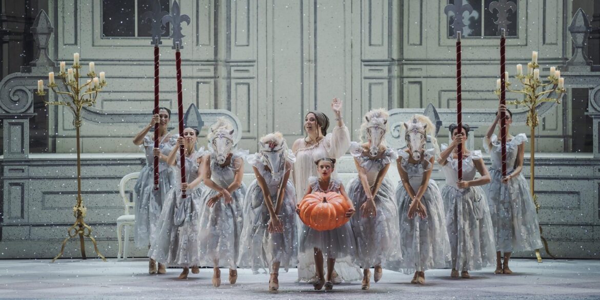 La scénographie de Roberta Lazzeri, transférée de la cour des Ammannati à la salle Mollino, consiste en un système de châssis mobiles peints recréant les différents espaces, avec un lointain rappel visuel de la légendaire Cenerentola de Jean-Pierre Ponnelle de 1971, également au Maggio Musicale Fiorentino. Un décor de fond qui semble rendre hommage à la ville hôte reprend la perspective de la Galerie de Diane de la Reggia de Venaria, afin de conférer davantage de faste au palais de Don Ramiro, prince de Salerne — caractérisation ici bien plus concrète que le générique « fils du roi » du conte de Perrault. Dès l’ouverture, Lalli insiste sur l’amour de Cenerentola pour les livres, symbole d’évasion et de rédemption, et sans doute dernier lien affectif avec sa mère défunte. Des livres dont les pages sont sadiquement arrachées par les demi-sœurs. L’échange de rôles entre le prince et le valet est lui aussi montré « à vue », dans un choix au goût didactique qui laisse peu de place à l’intelligence du spectateur.