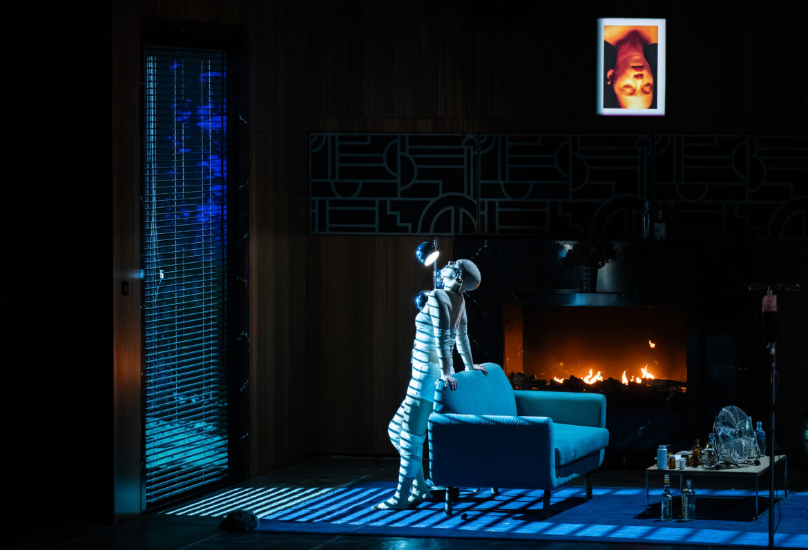 Dans sa mise en scène, Kornél Mundruczó refuse toute assimilation du personnage à une diva d’opéra traditionnelle. Emilia n’est plus tout à fait humaine ; selon le metteur en scène, « elle est incapable de montrer ses émotions », après avoir trop vécu et trop observé les passions humaines — le désir, le bonheur, la violence. Affichant un look plutôt rock, cheveux courts noir et blanc platine, pantalon de cuir — des références revendiquées à David Bowie ou Björk —, Emilia se dépouille progressivement de ses vêtements. À la fin, son corps porte les traces visibles de violences : autant de marques accumulées au fil de plus de trois siècles d’existence. Dans l’appartement contemporain d’Emilia, le réfrigérateur symbolise une porte entre passé et présent. La modernité est omniprésente, notamment à travers la projection d’un film d’autoroute, image d’un temps qui défile sans fin. Lorsque, dans la scène finale, l’enveloppe contenant la formule de l’élixir est jetée au feu et qu’Emilia meurt, les meubles se soulèvent : comme si, enfin, son existence pouvait se suspendre. Notons les très belles lumières de Felice Ross, qui renforcent le caractère mystérieux de l’affaire.